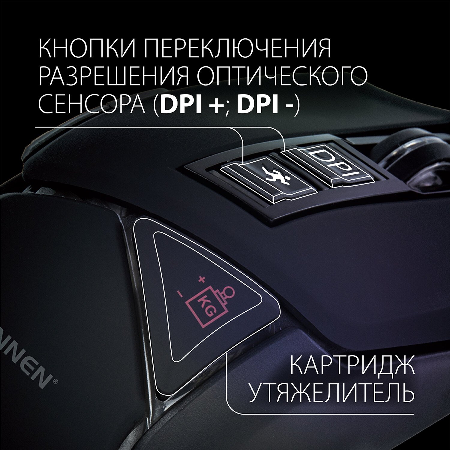 Игровая мышь SONNEN Q10 гарантирует удобство и надежность во время игры или работы. 8 режимов переключения DPI и возможность регулировки веса подарят незабываемые ощущения от игрового процесса.