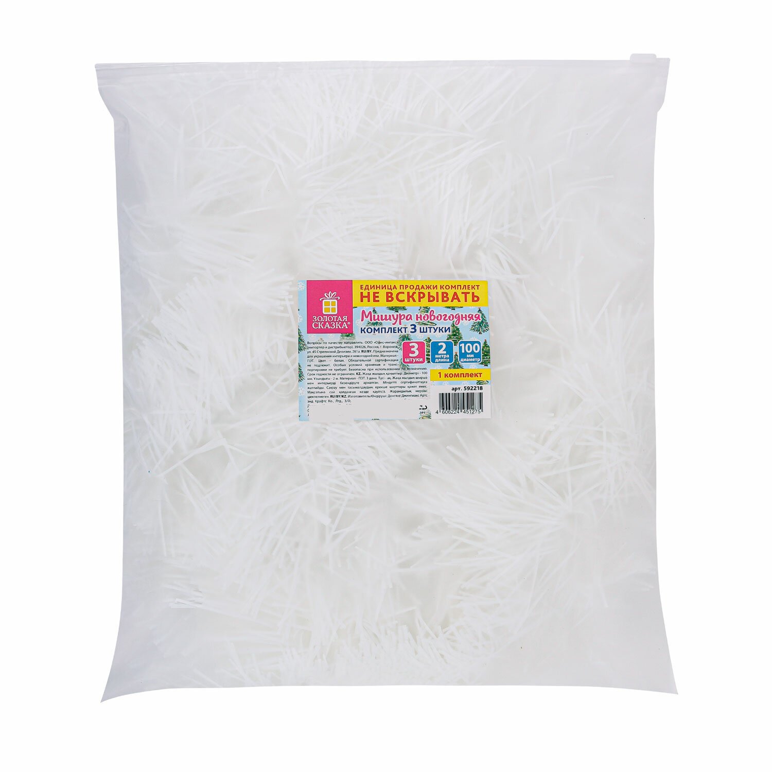 Мишура КОМПЛЕКТ 3 штуки, диаметр 100 мм, длина 2 м, белая, 592218