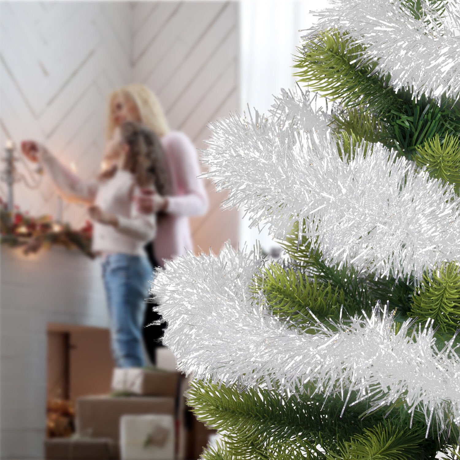 Длина мишуры в расправленном виде составляет 2 м, диаметр – 10 см. Материал мишуры – полиэтилентерефталат. В комплекте – 3 штуки мишуры белого цвета. Упакованы в пакет с зиплоком.