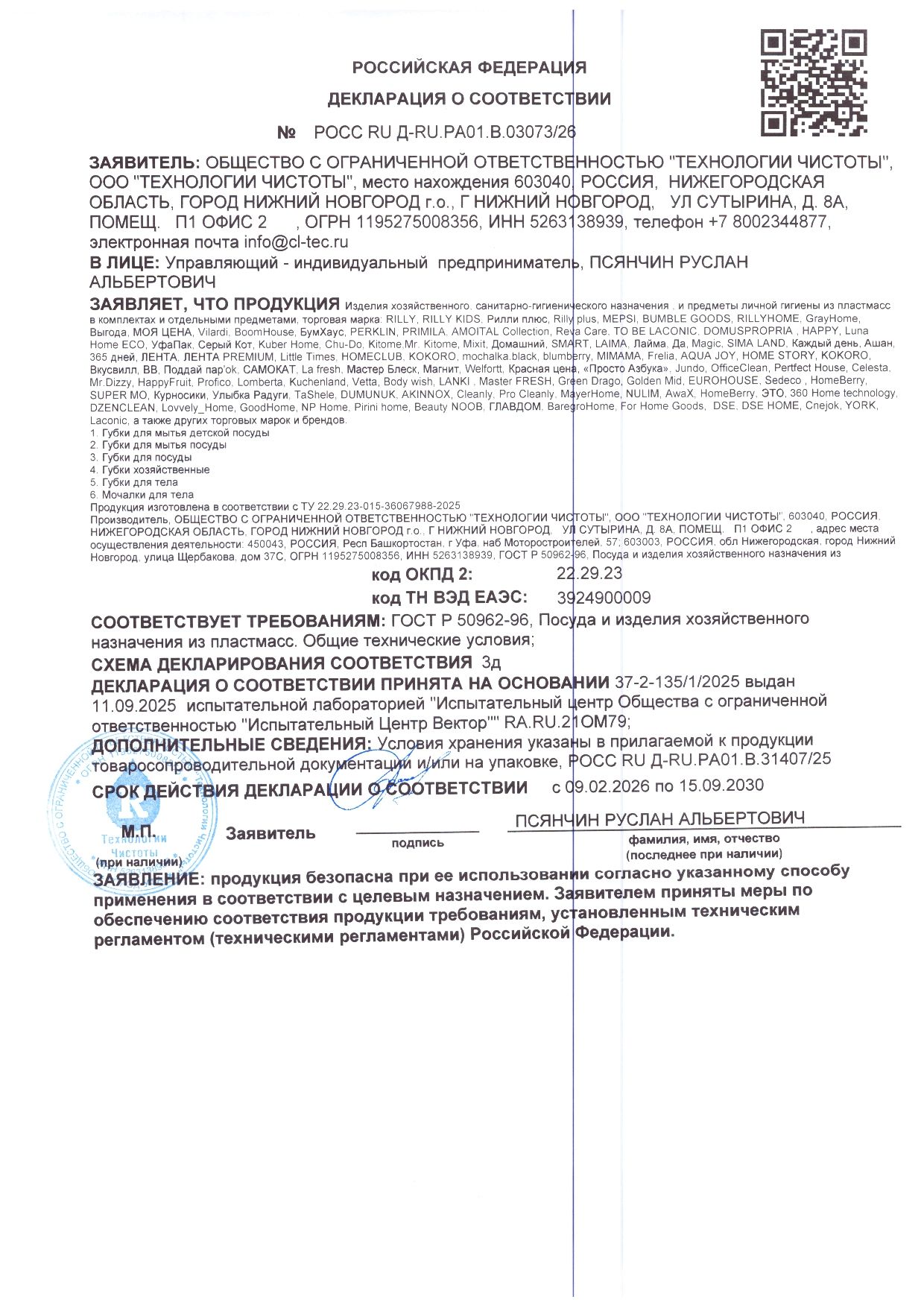 • Материал – полипропилен, полиуретан (поролон)