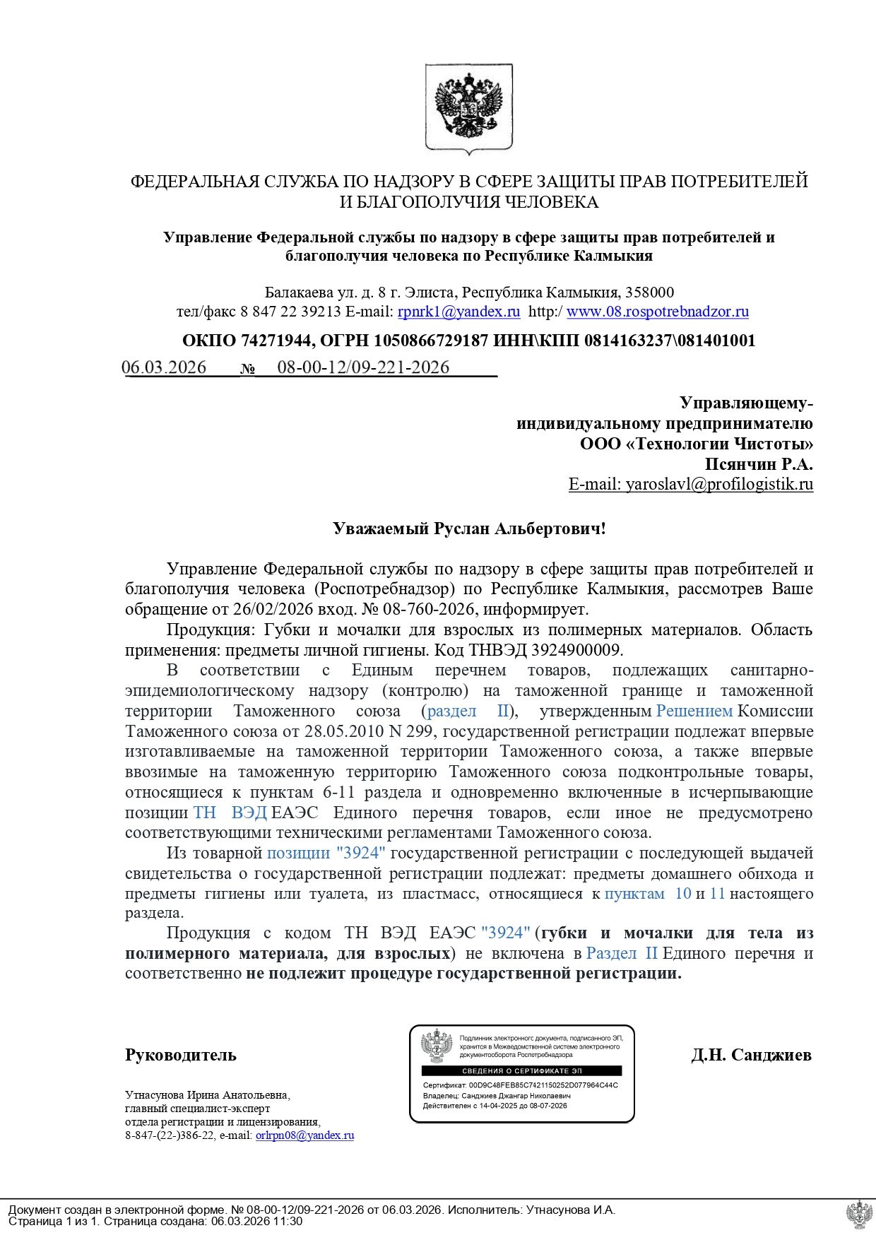 | Упаковка | пакет |