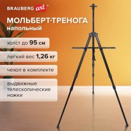 Мольберт алюминиевый BRAUBERG ART CLASSIC, УСИЛЕННЫЙ, тренога, переносной, разлож. 98x180x91, 191281