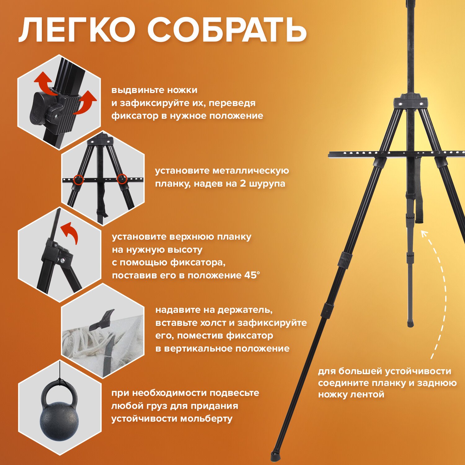 Мольберт-тренога обладает рядом преимуществ: