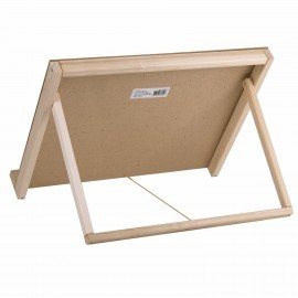 Настольный планшетный мольберт изготовлен из липы. Мольберт отлично подходит для работы с малыми и средними форматами, максимальный размер бумаги – А2. Планшет мольберта представляет собой жесткую основу, за счет этого на мольберте легко можно закрепить бумагу малярным скотчем или зажимами. Поверхность планшета хорошо отшлифована и подходит даже для тонкой бумаги. Наклон мольберта фиксируется в одном положении с помощью веревки. Мольберт удобно хранить в сложенном виде. Высота холста – до 50 см. Размер в разложенном виде – 42х60х30 см. Вес – 1,74 кг.