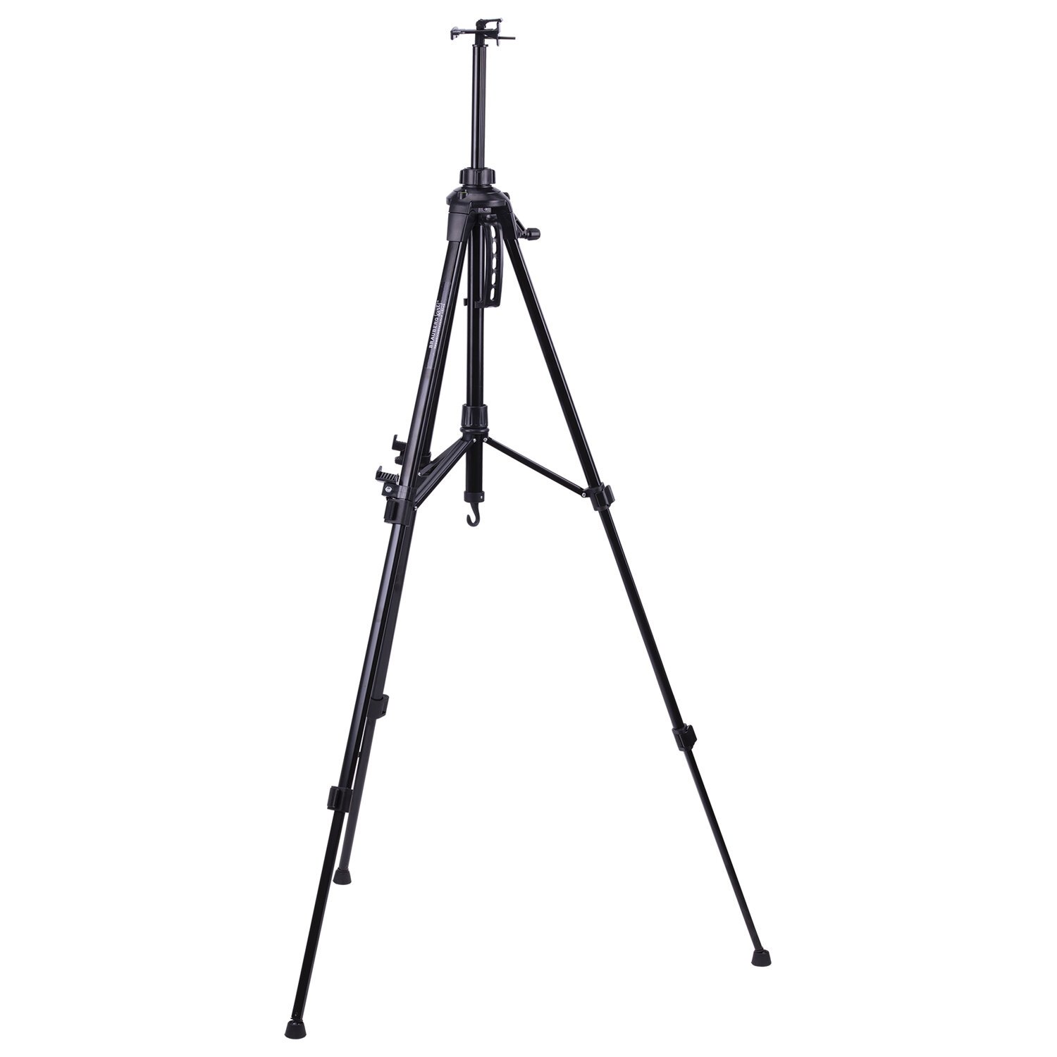 Мольберт оснащен крючком, на который можно подвесить ведерко с краской или груз для придания устойчивости. Выдвижные ножки оснащены зажимами-клипсами, как у современных фотоштативов, благодаря чему установка мольберта производится очень быстро. Выполнен из устойчивого к коррозии металла, который обеспечивает легкость и прочность изделия. Максимальная высота размещаемого холста – 73 см.