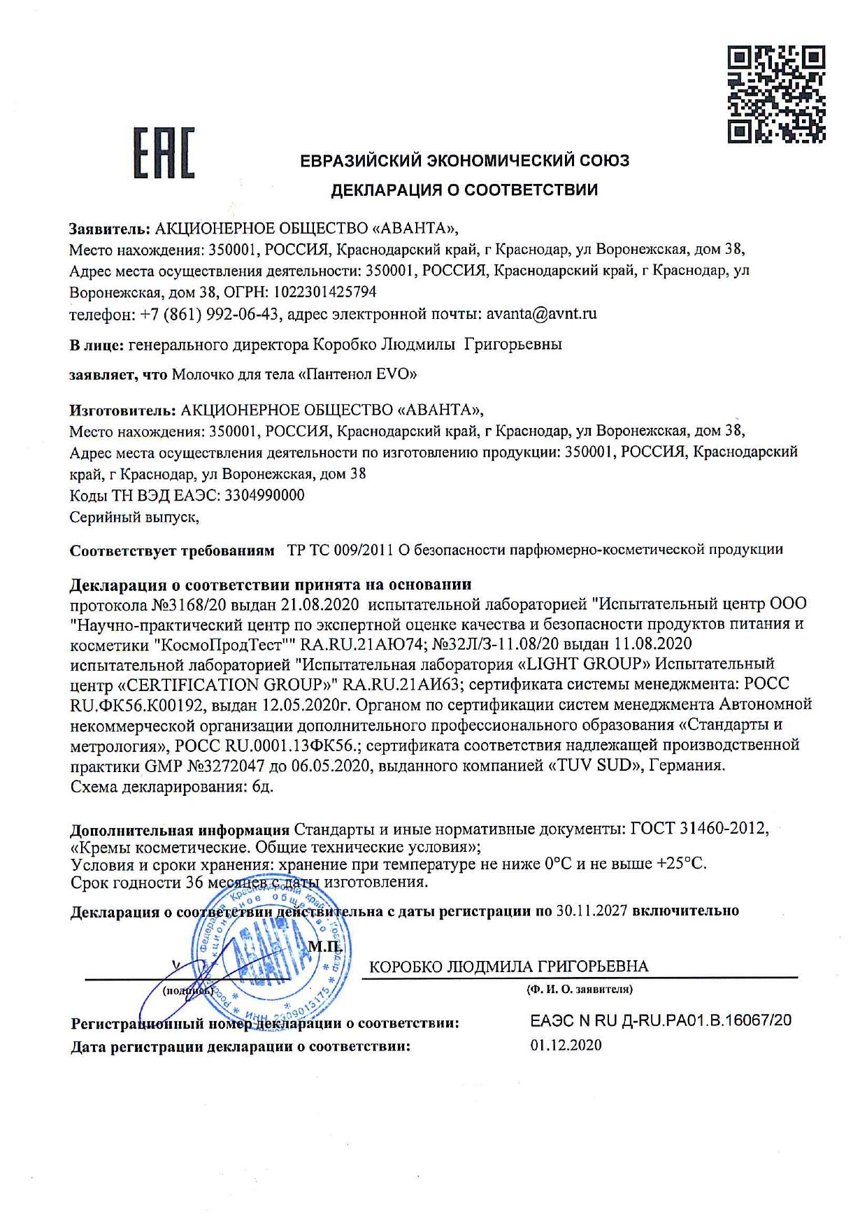 Молочко для тела гипоаллергенное 150 мл, ПАНТЕНОЛ EVO, 1644