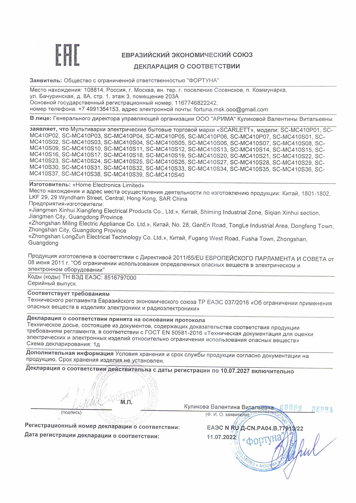 Вместительная мультиварка SCARLETT SC-MC410S27 поможет приготовить любое блюдо при нужной температуре.