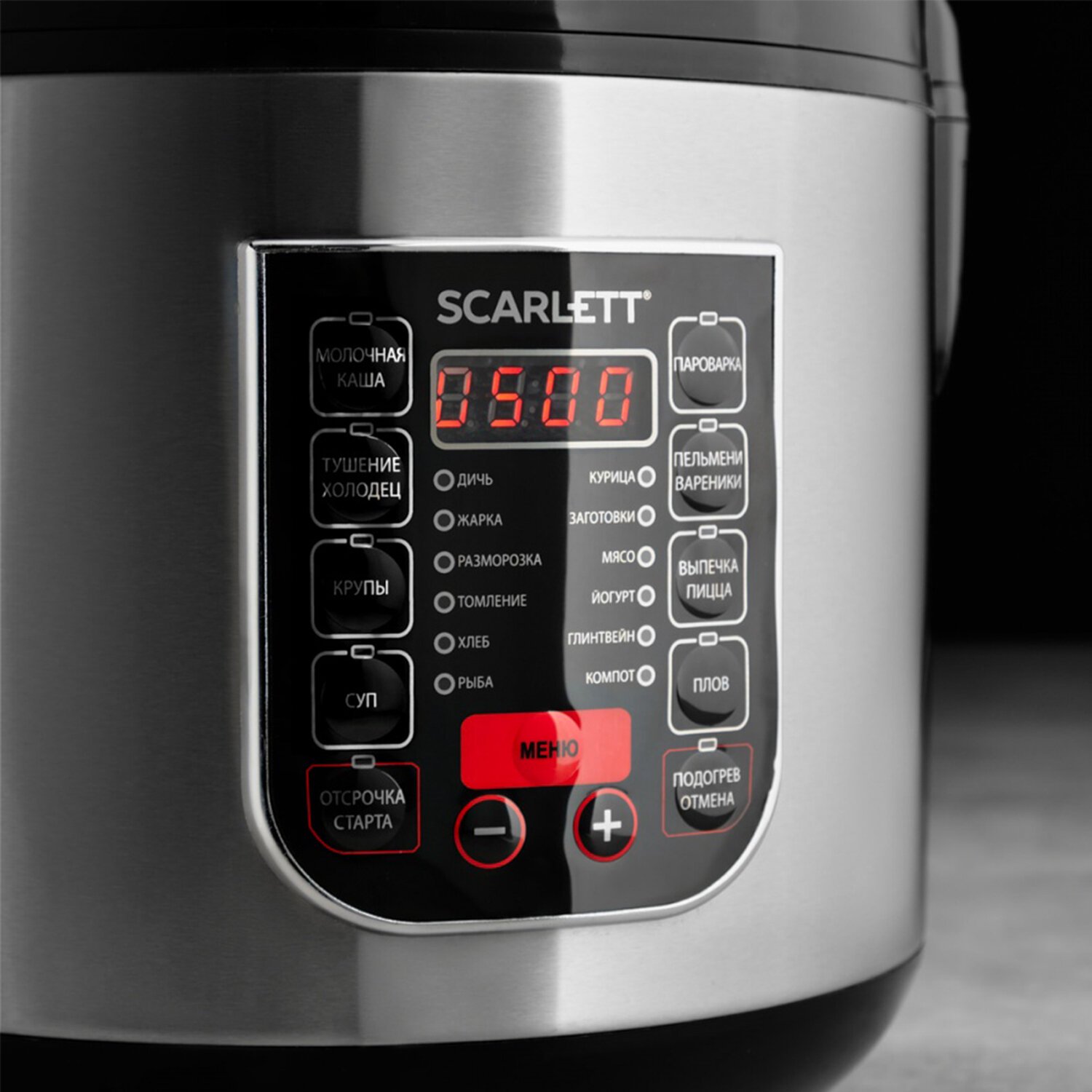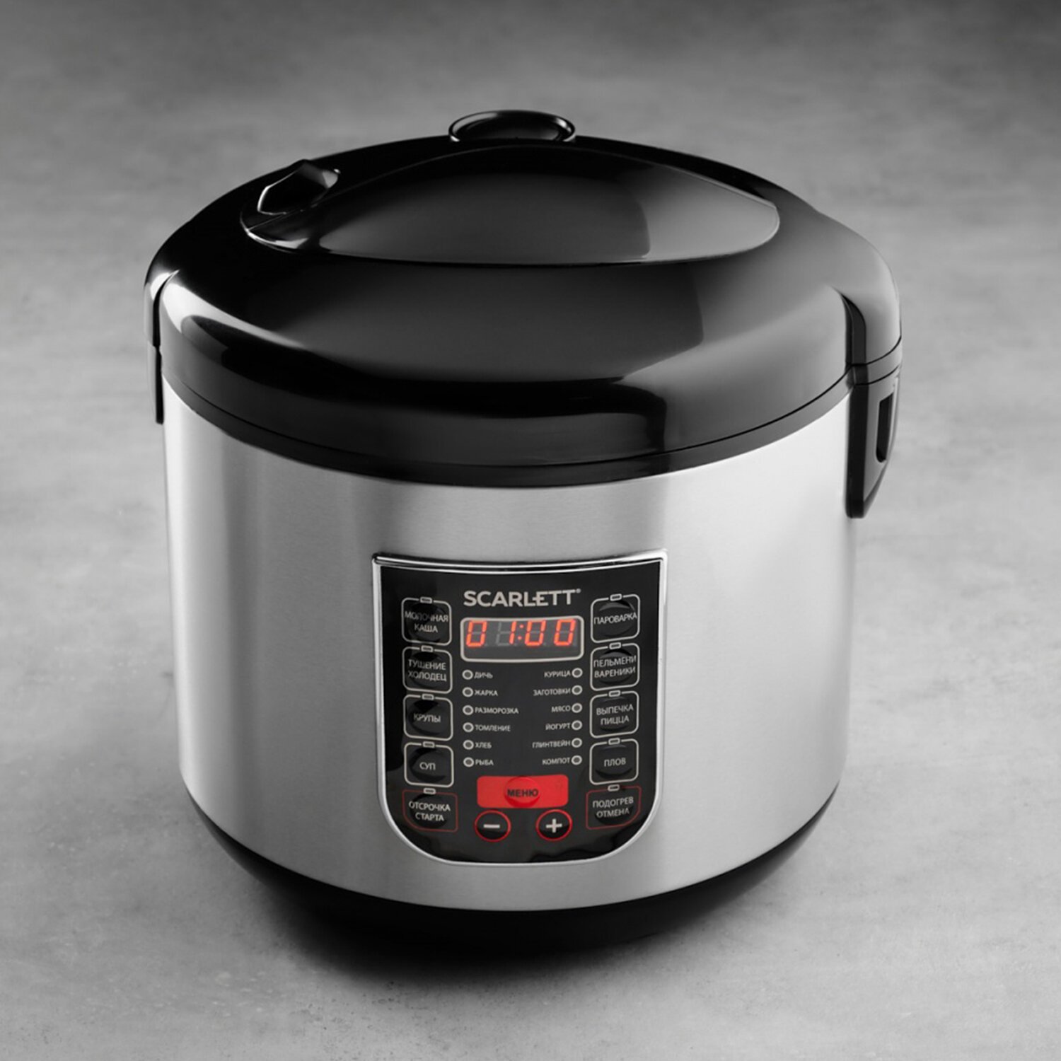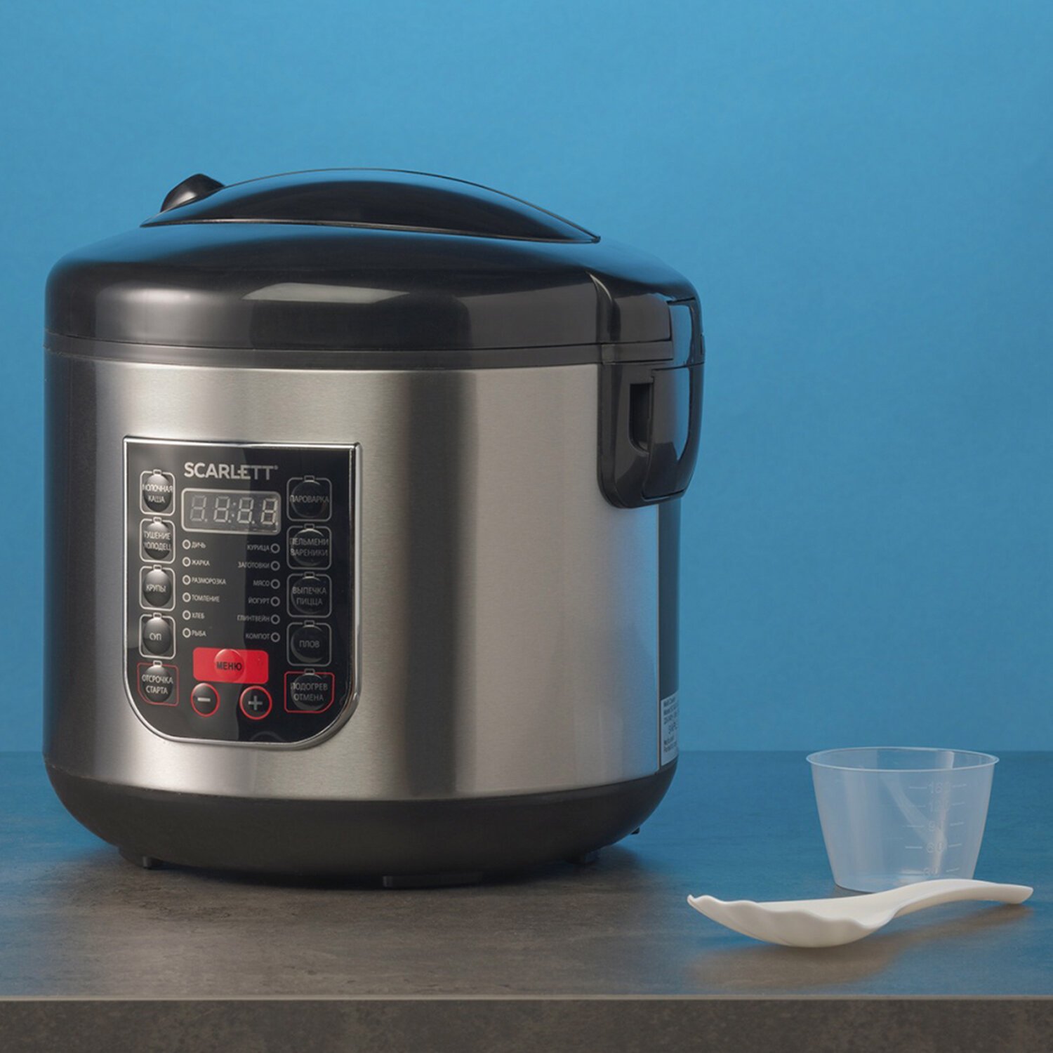 Мультиварка SCARLETT SC-MC410S27, 900 Вт, 5 л, 22 программы, серебро/черная