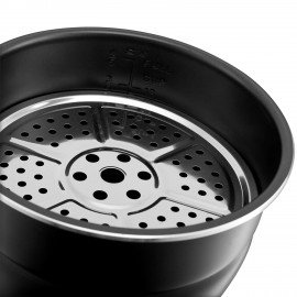 С её помощью можно тушить, жарить, готовить на пару. Чаша обладает антипригарным покрытием, поэтому еда не будет подгорать и прилипать. Объем чаши – 5 л. Также ее удобно мыть в посудомоечной машине.