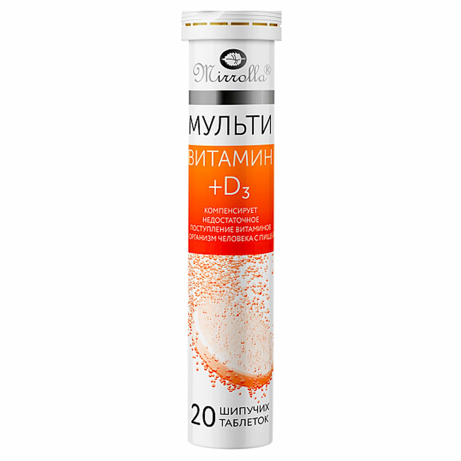 Мультивитамин+D3, шипучие таблетки со вкусом апельсина 20 шт., БАД, МИРРОЛЛА, ЦБ-00015197