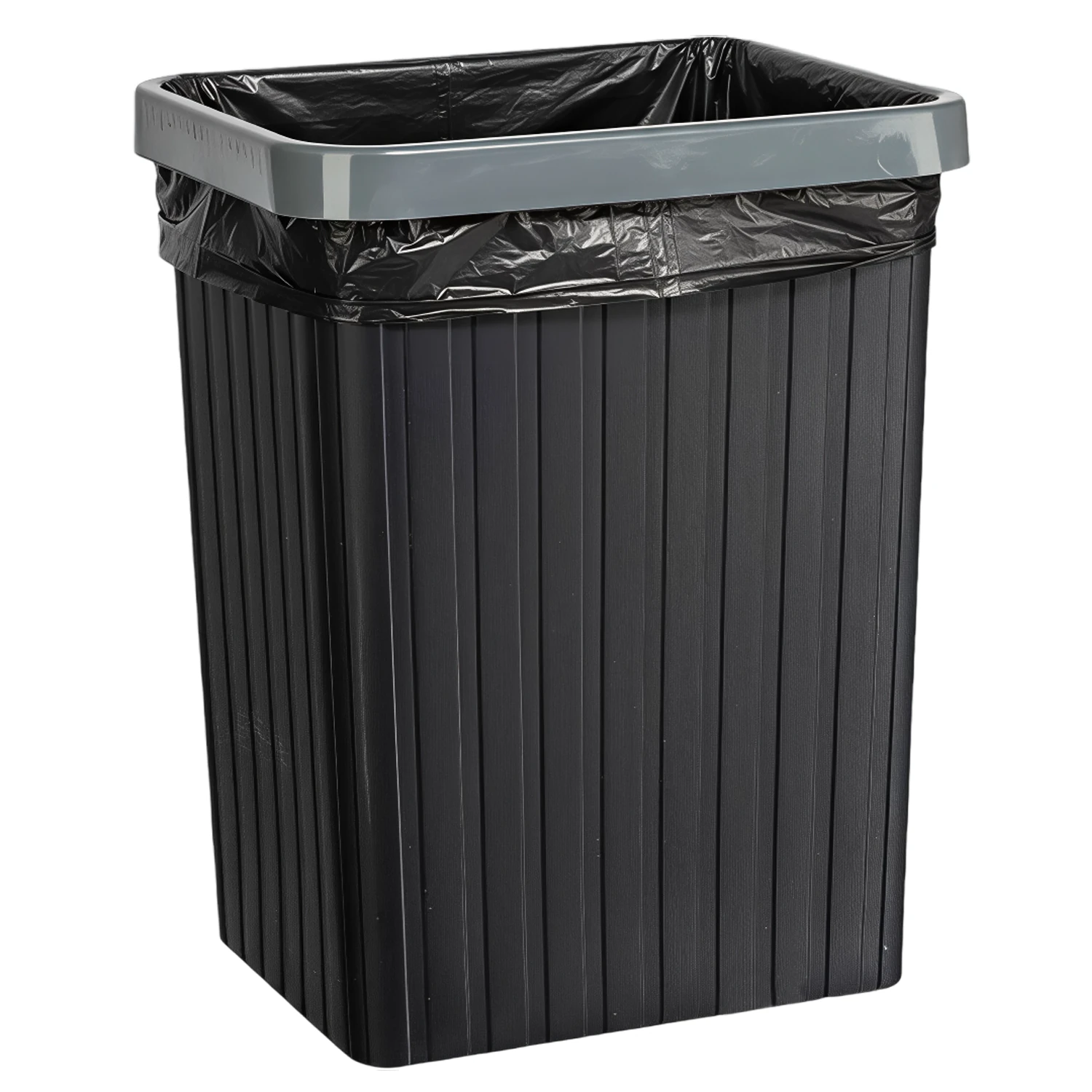 Мусорное ведро КОМПЛЕКТ с ободком-держателем мешков, прямоугольное, 13 литров, черное, LAIMA, 702295