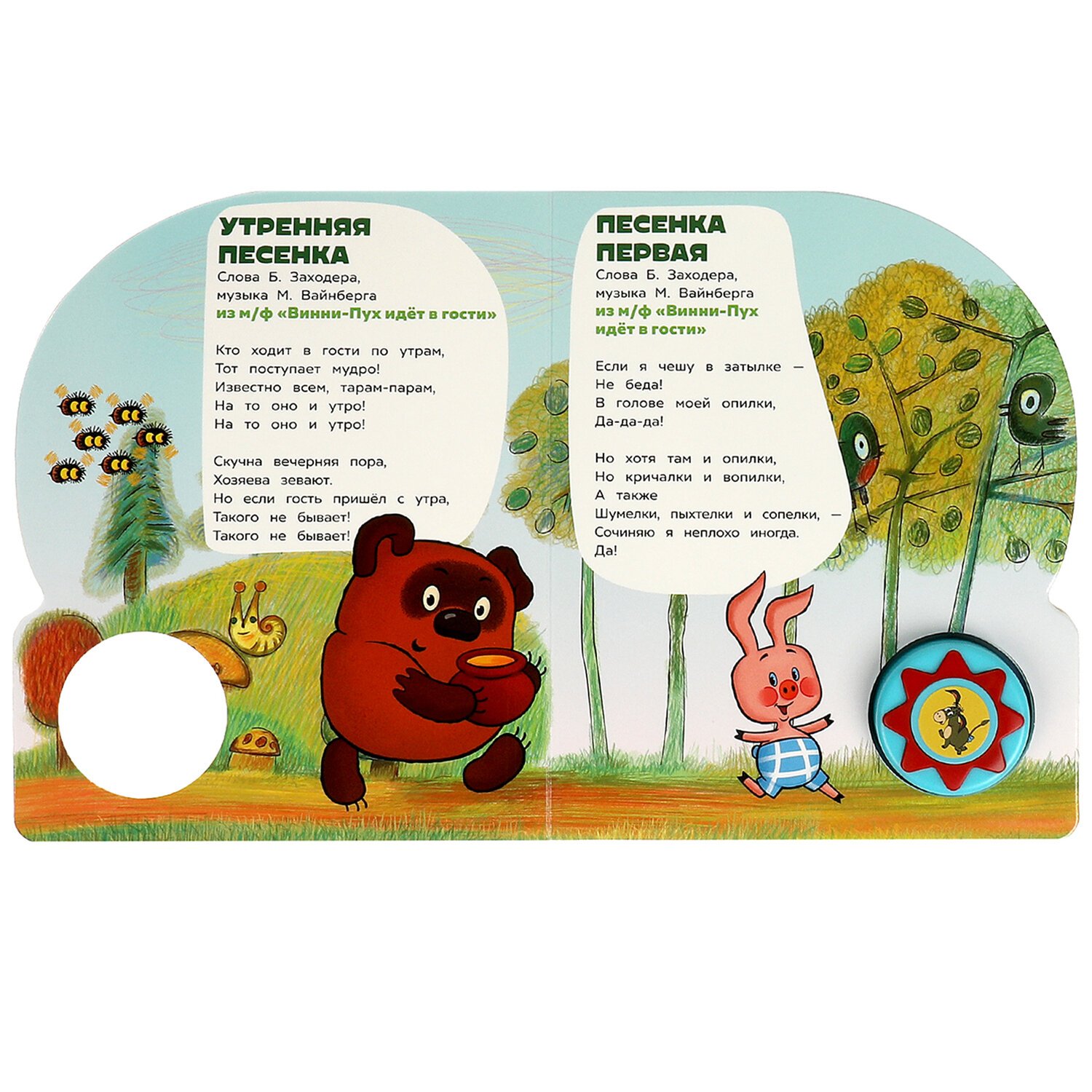 Ребёнок с удовольствием будет листать плотные картонные страницы, рассматривать красочные картинки, нажимать на кнопку и слушать весёлые и мелодичные песенки, подпевая героям любимых мультфильмов.