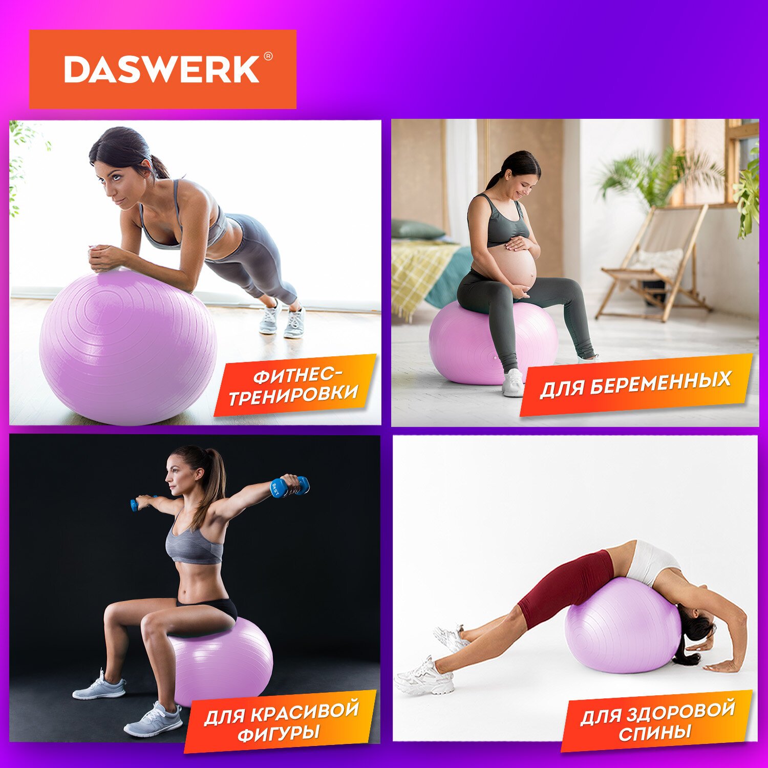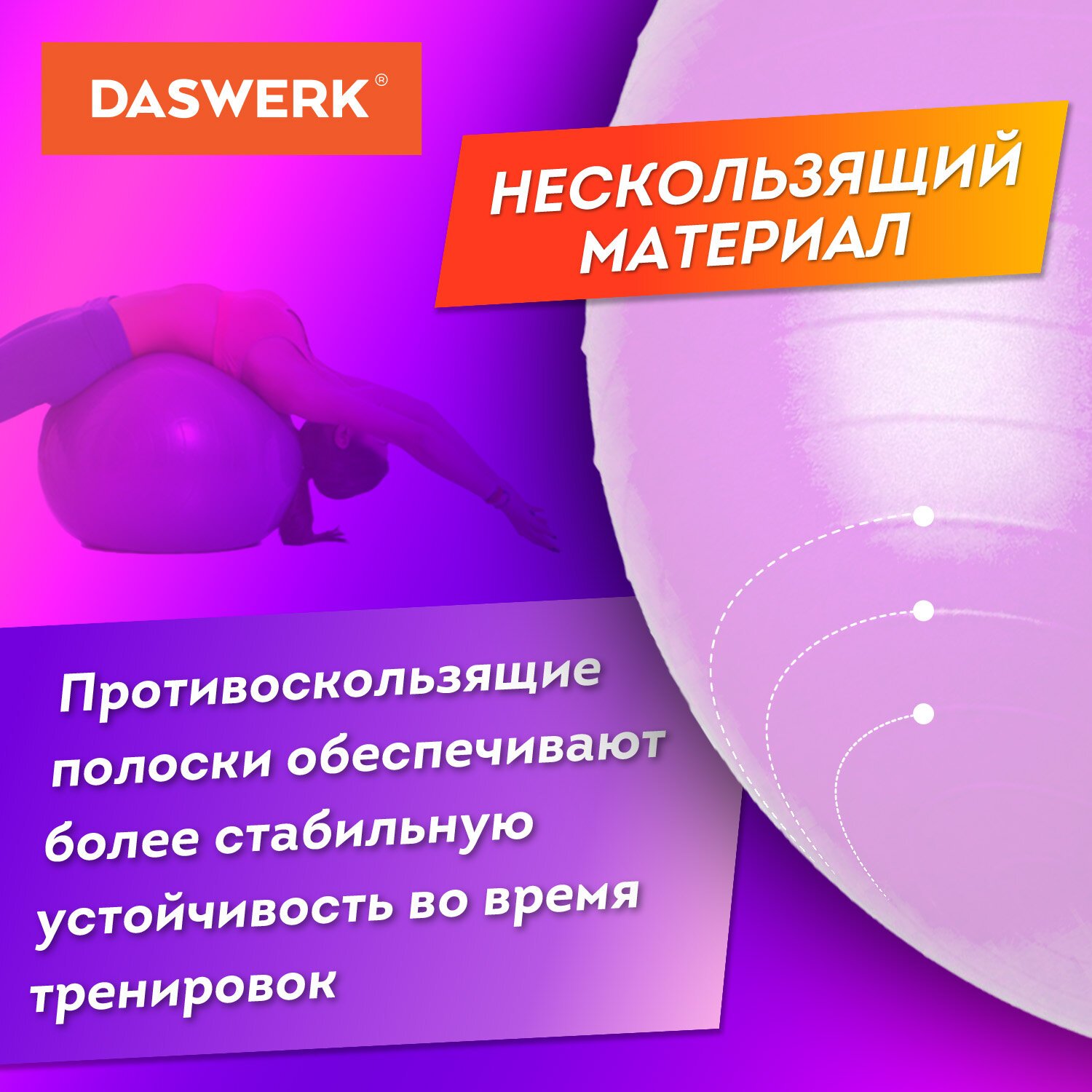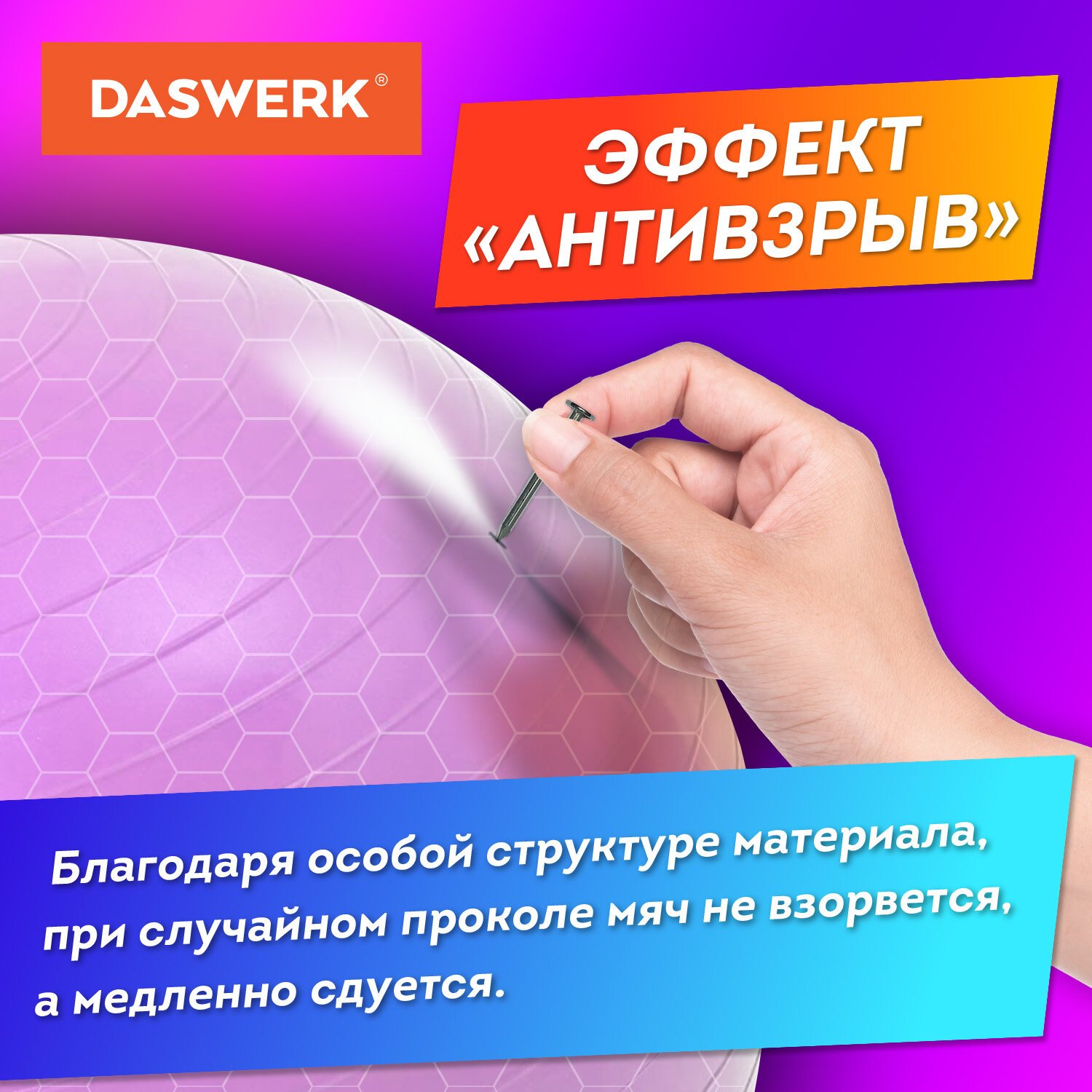 Мяч гимнастический (фитбол) 65 см с эффектом "антивзрыв", с ручным насосом, фиолетовый, DASWERK, 680017