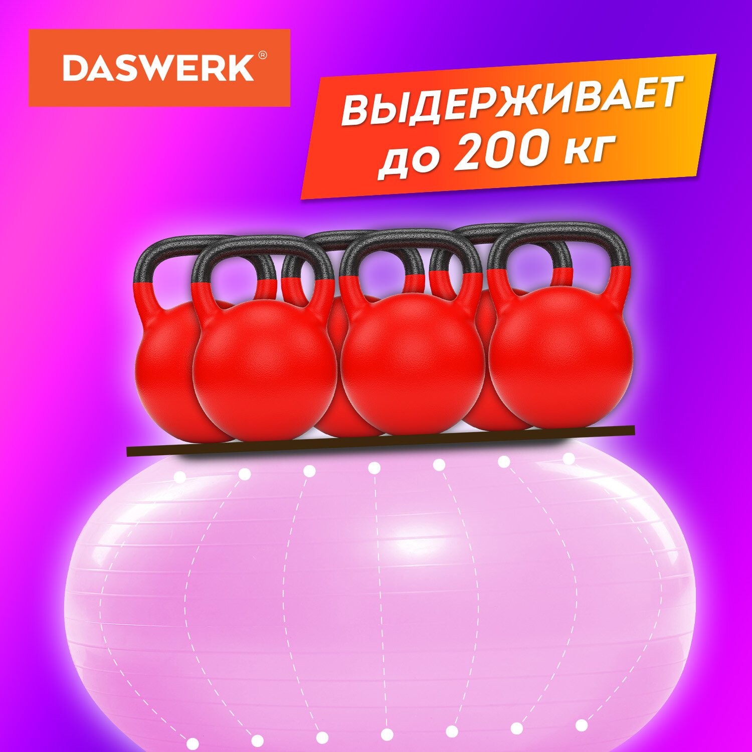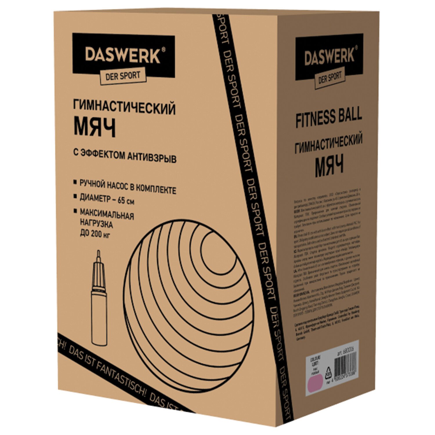 Мяч гимнастический (фитбол) 65 см с эффектом "антивзрыв", с ручным насосом, розовый, DASWERK, 680016