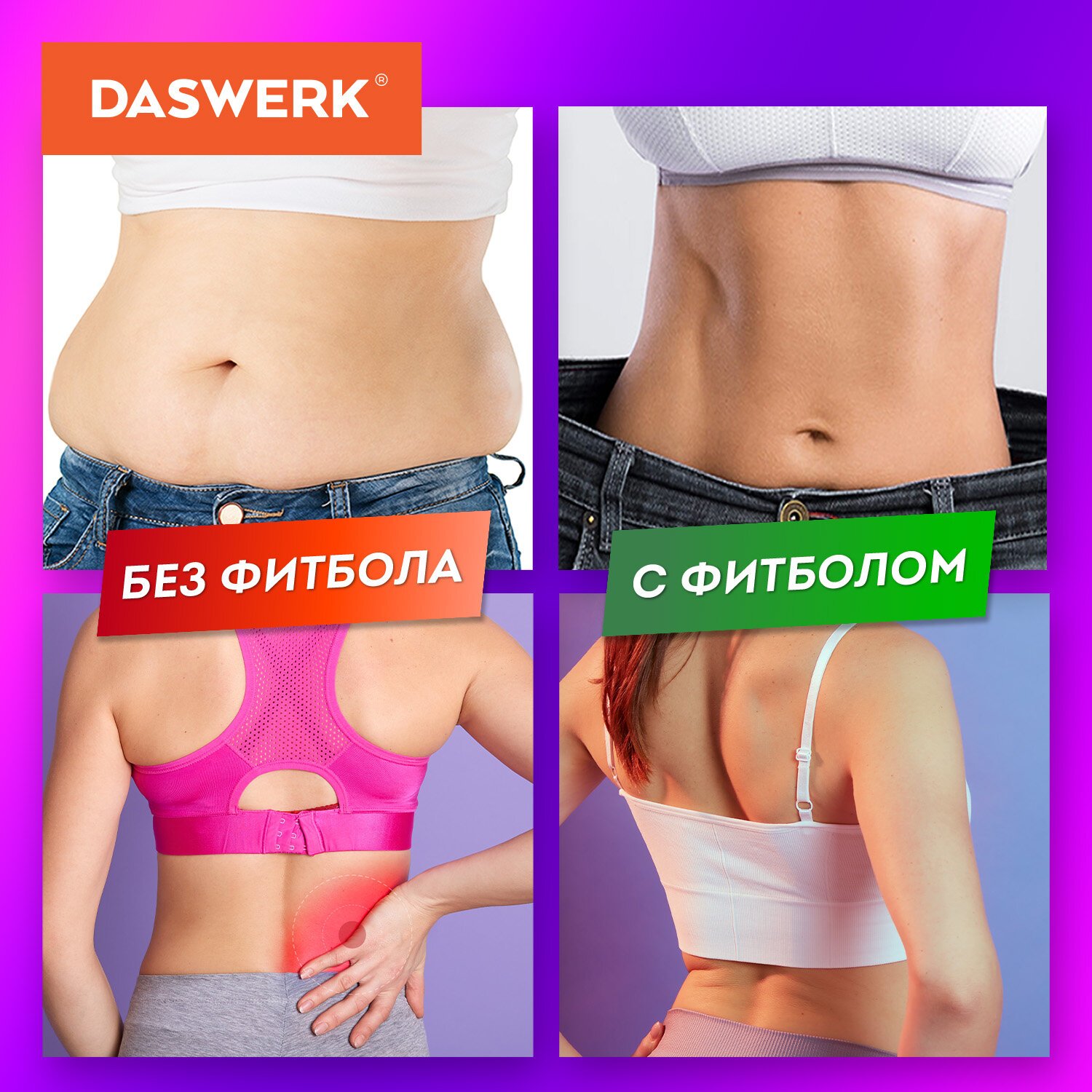 Массажер для спины/мостик для растяжки PREMIUM, 3 уровня нагрузки, фиолетовая вставка, DASWERK, 680036