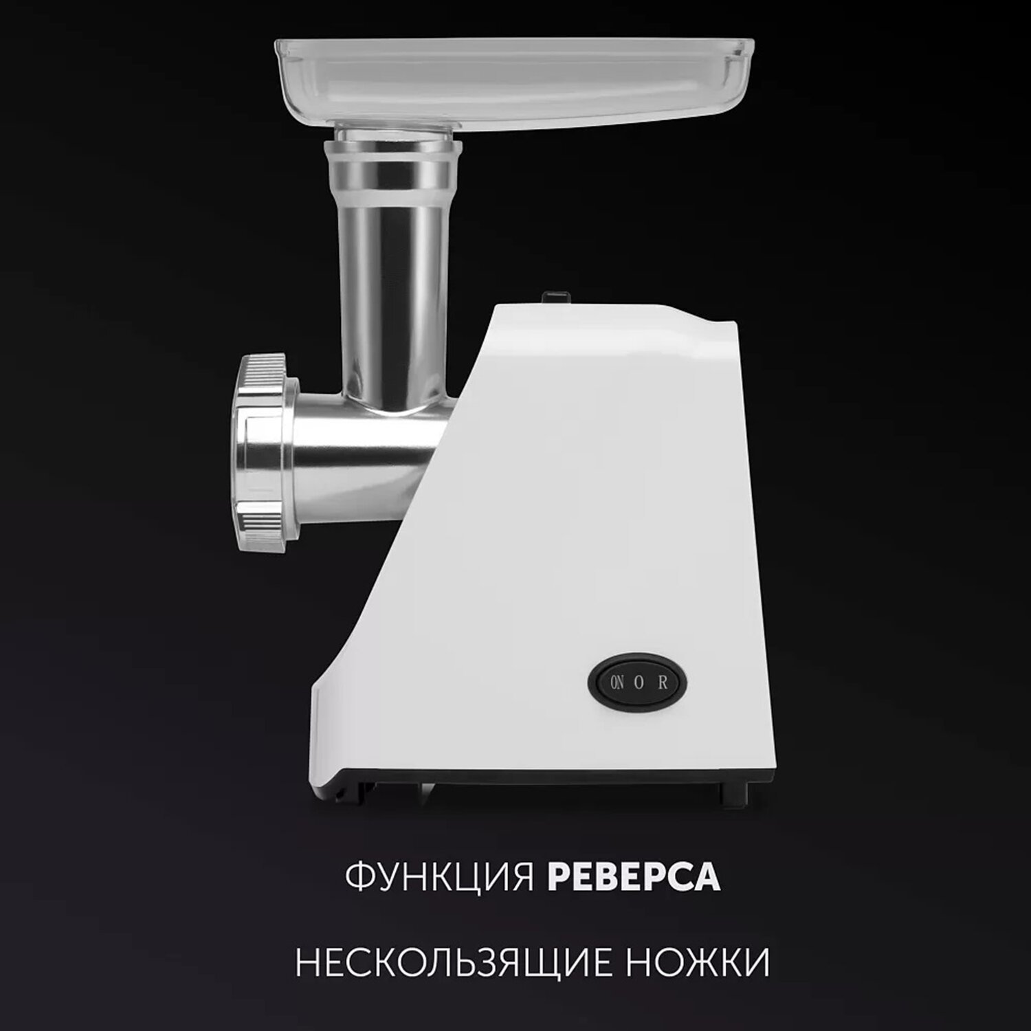 Мясорубка POLARIS PMG 1852, 1800 Вт, производительность 2 кг/мин, 2 насадки, реверс, белый, 61222