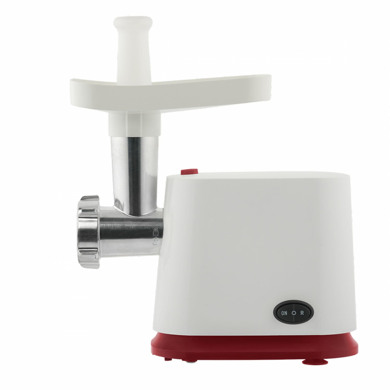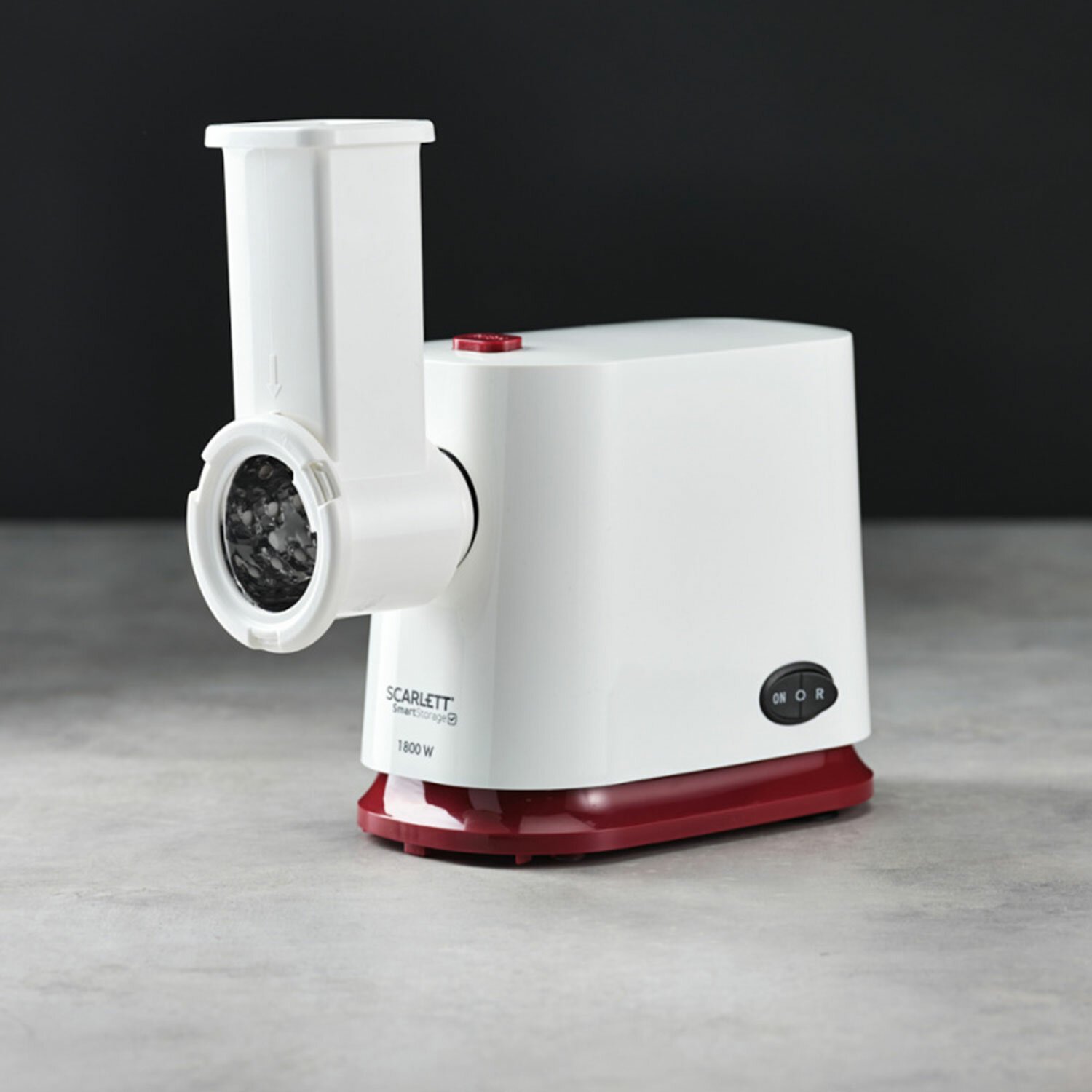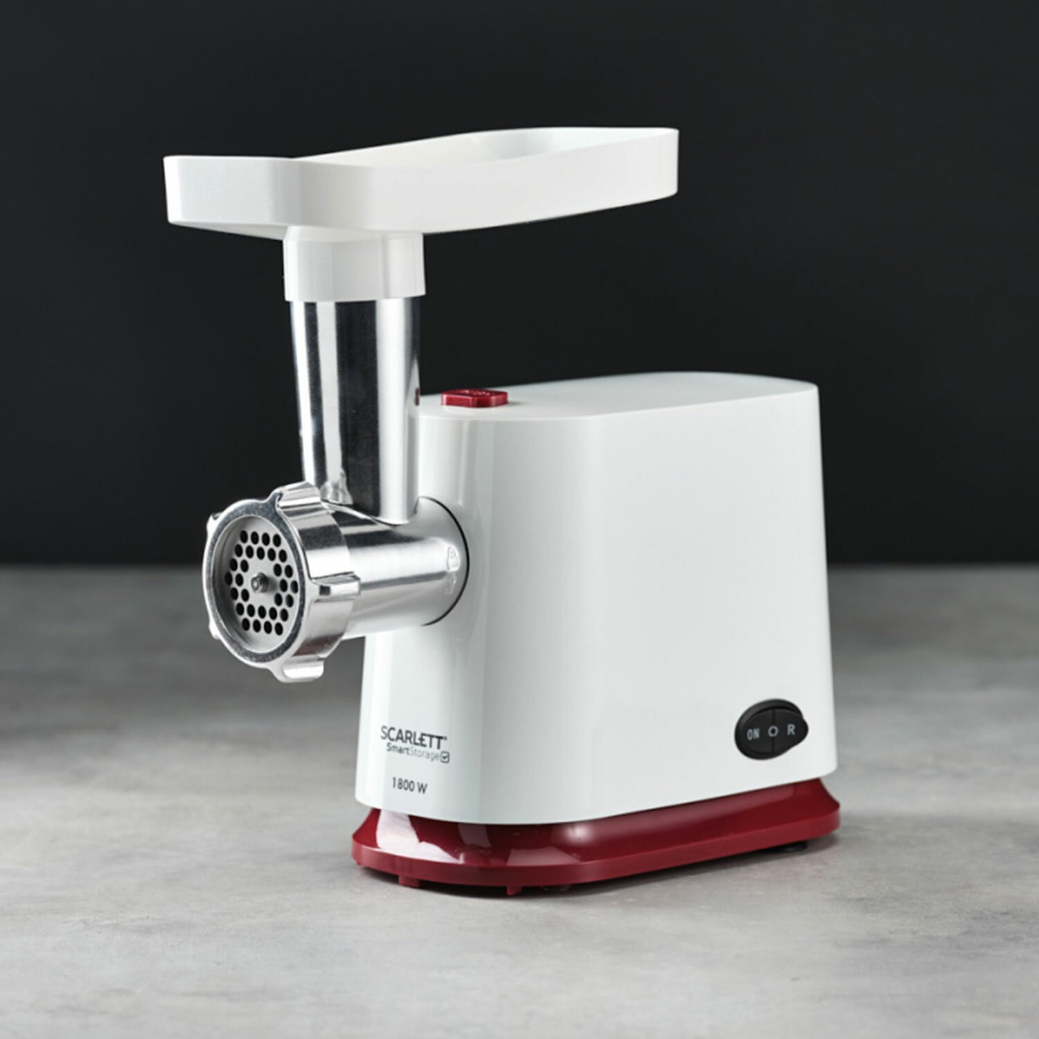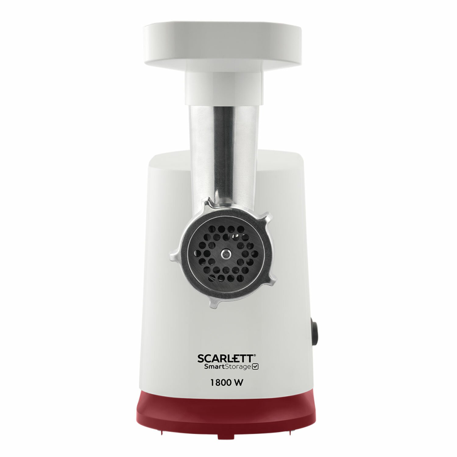 Мясорубка SCARLETT SC-MG45M23, 1800 Вт, производительность 2 кг/мин, 4 насадки, реверс, пластик, белая/бордо