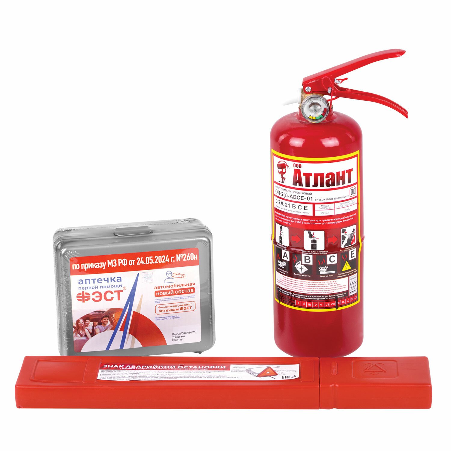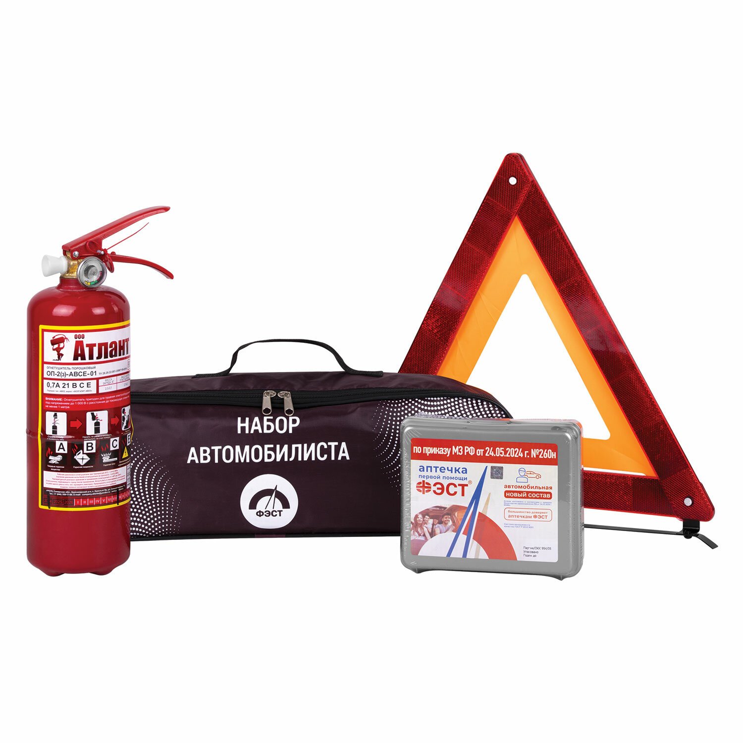 Набор автомобилиста "На техосмотр": аптечка (приказ 260н), огнетушитель ОП-2, знак, сумка, 3867