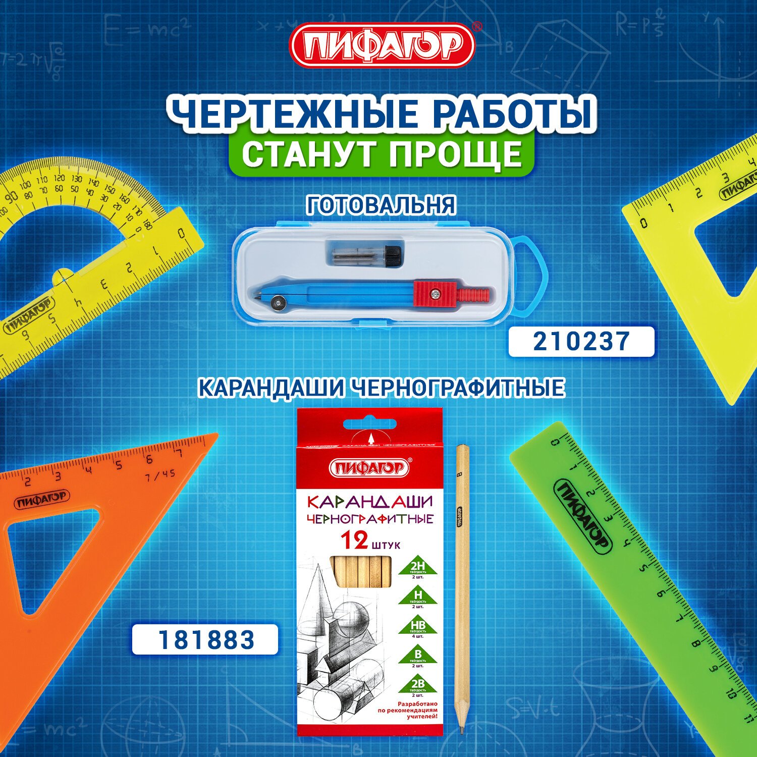 Набор чертежный геометрический ПИФАГОР предназначен для выполнения чертежных работ.