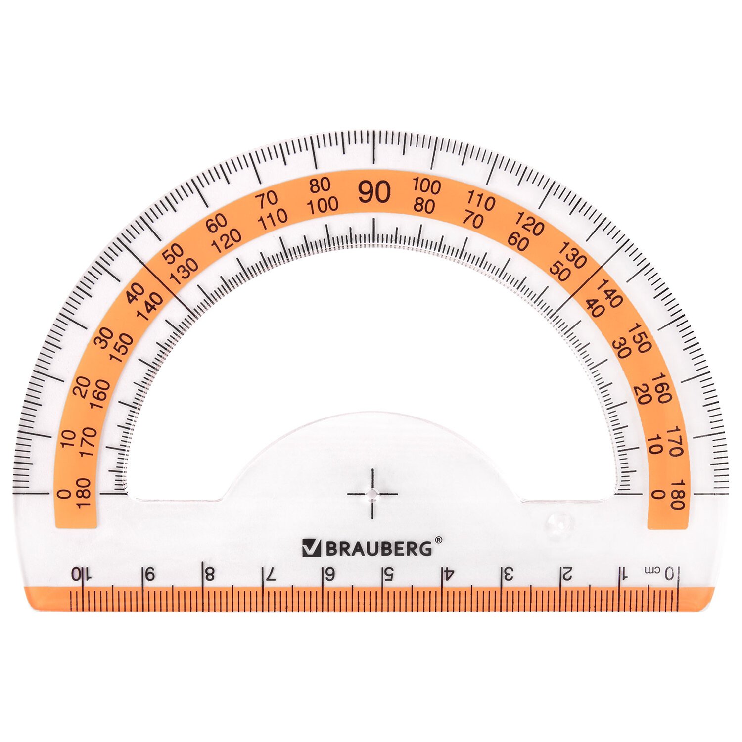 Транспортир пластиковый 10 см, 180 градусов, BRAUBERG, прозрачный, неоновый, ассорти, 210847