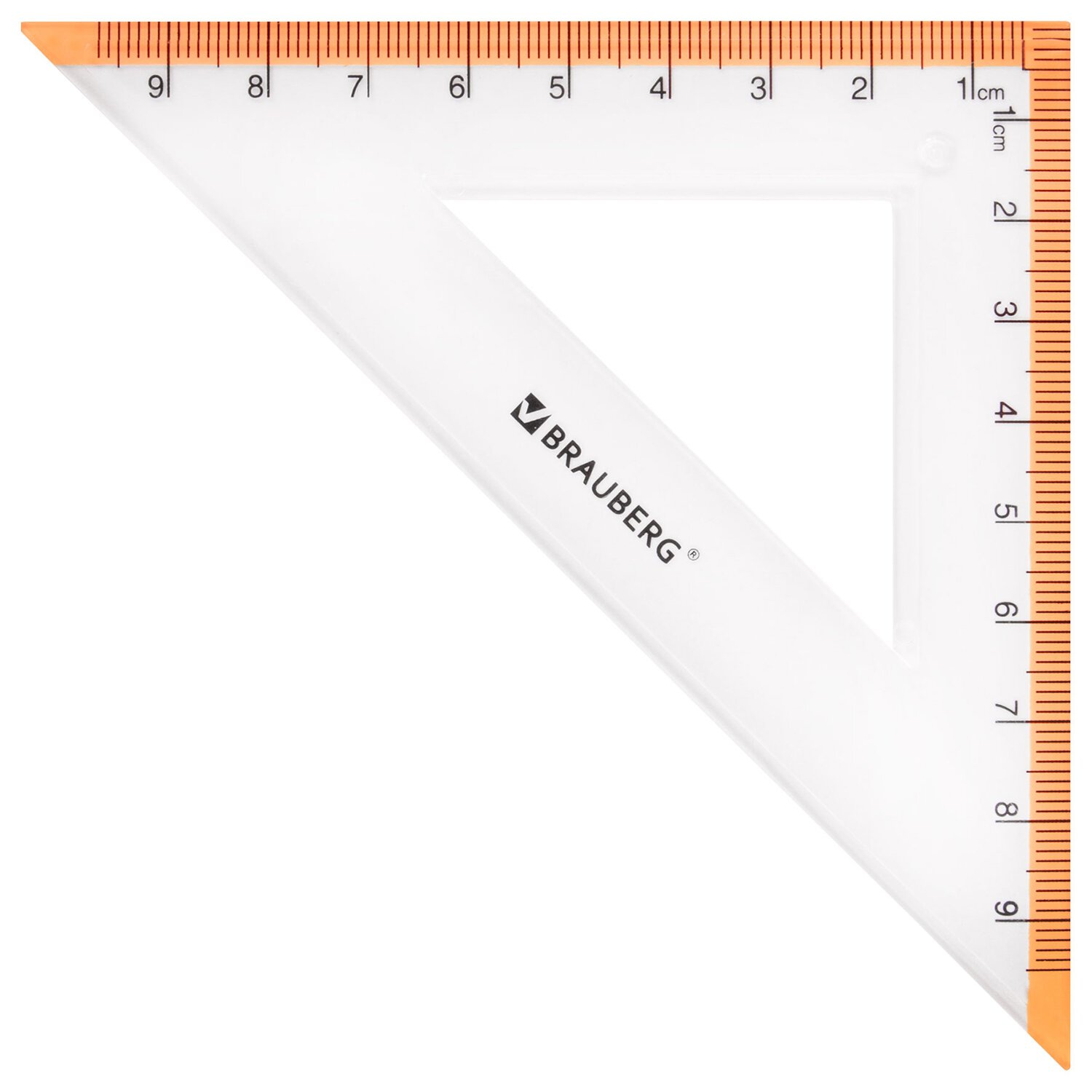 Треугольник пластиковый, угол 45, 13 см, BRAUBERG "Crystal", с транспортиром, прозрачный, с выделенной шкалой, 210293