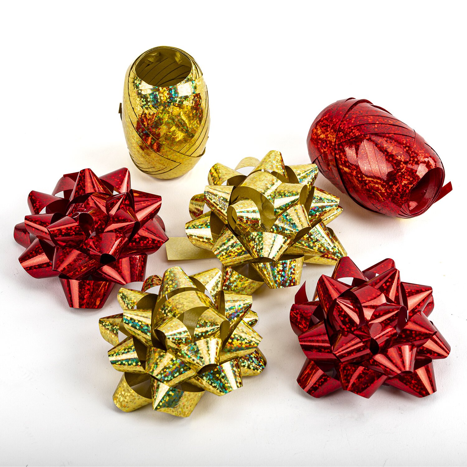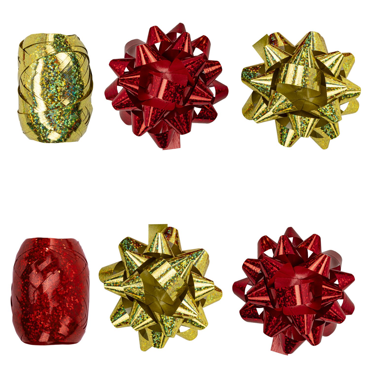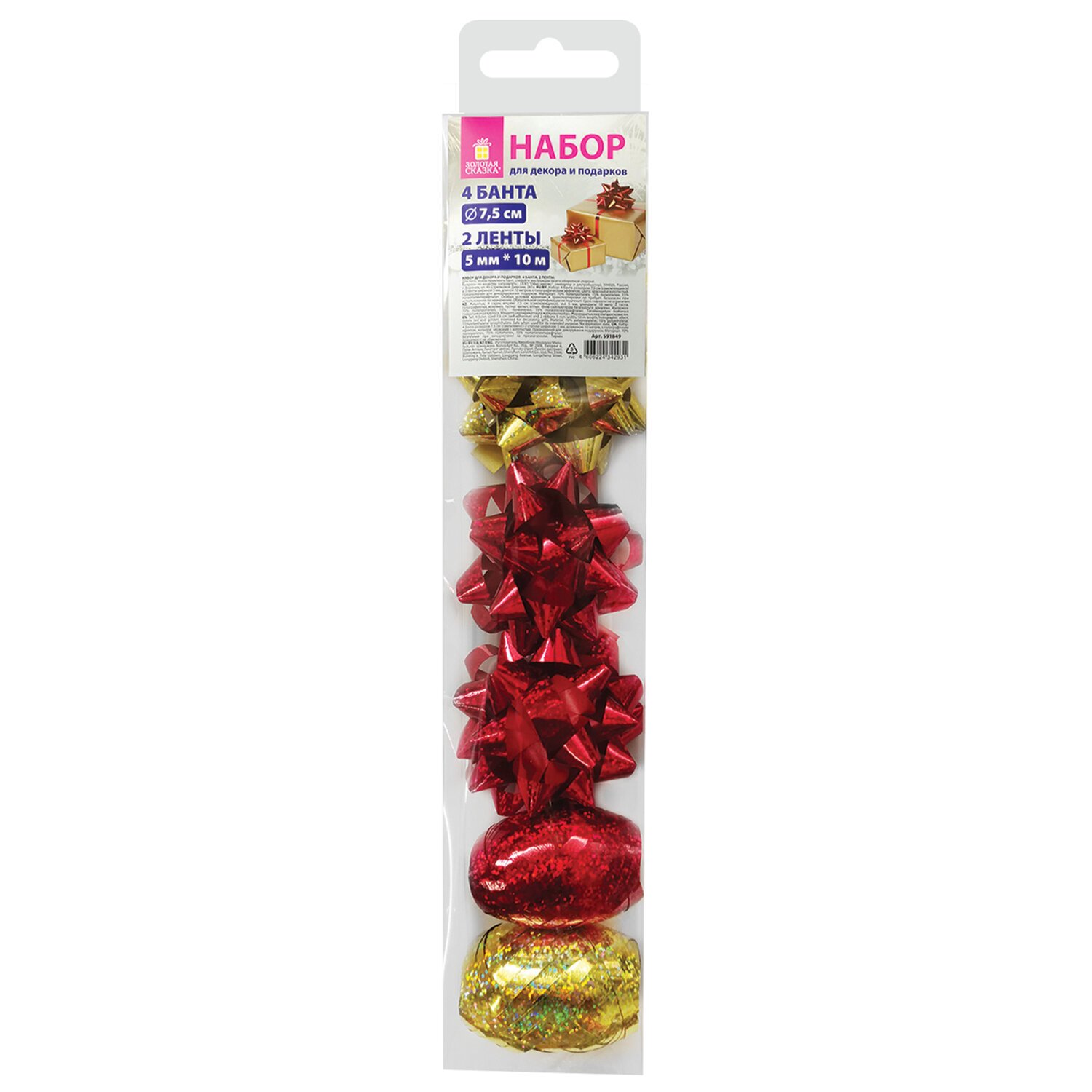 Набор для декора и подарков 4 банта, 2 ленты, голография, цвета красный, золото, ЗОЛОТАЯ СКАЗКА, 591849
