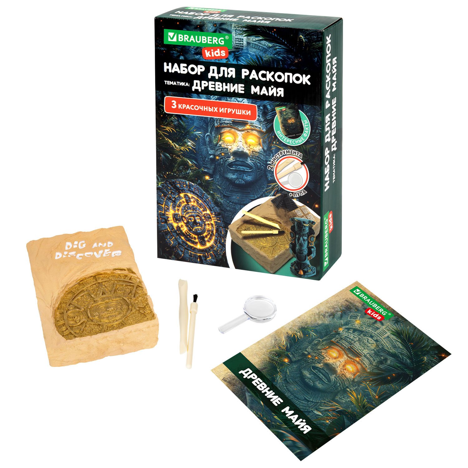 Набор для раскопок "Древние Майя" 16х23 см, инструменты, BRAUBERG KIDS, код 1с, 665940
