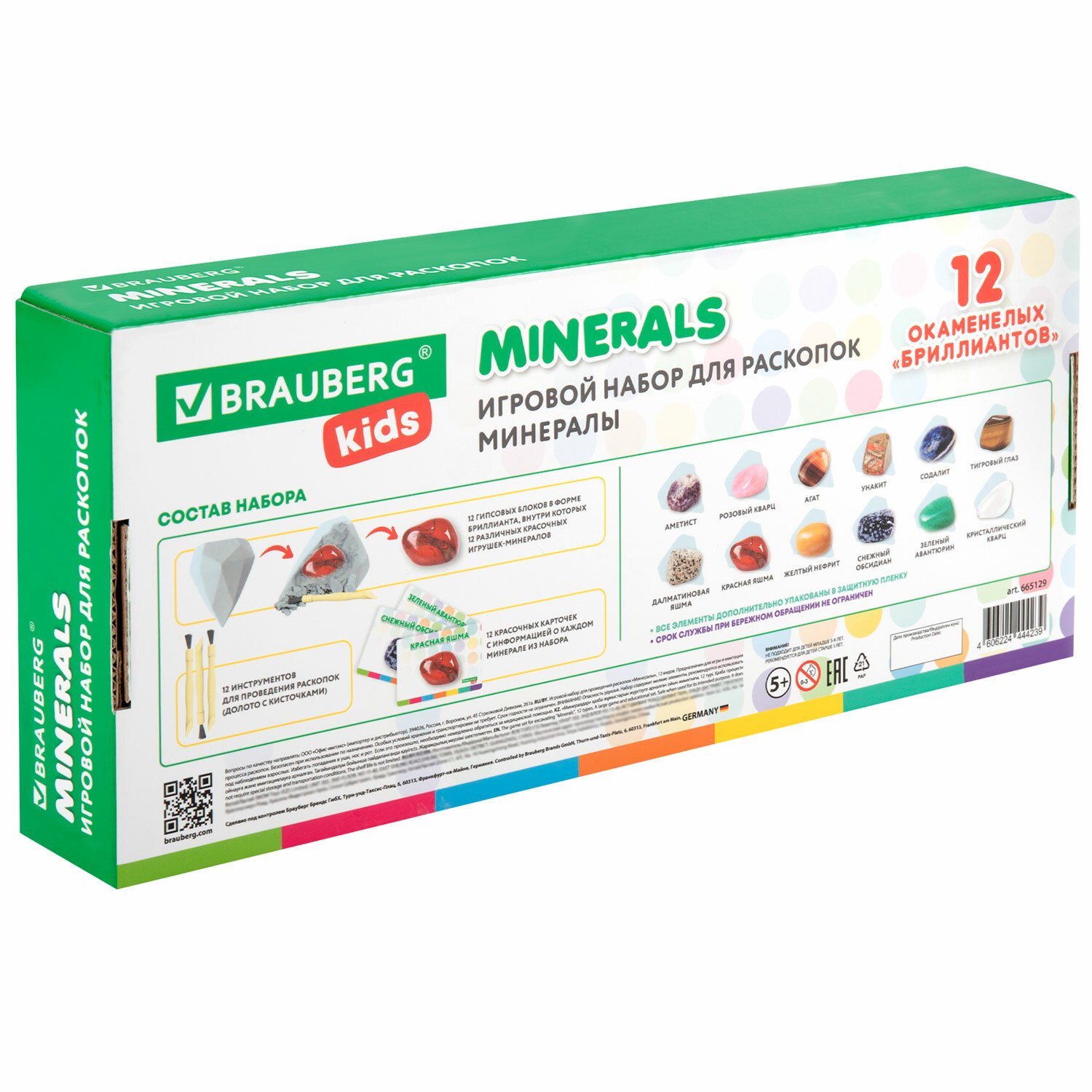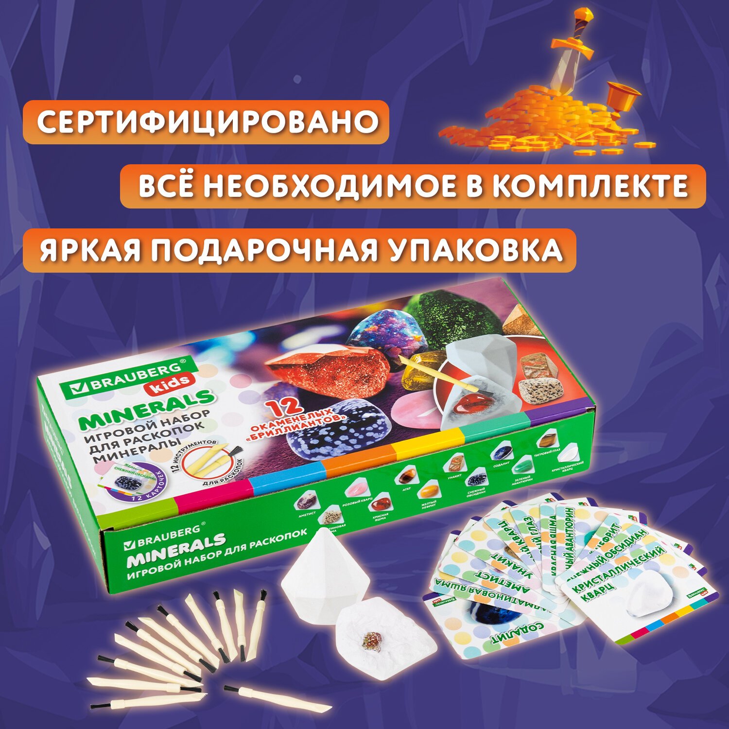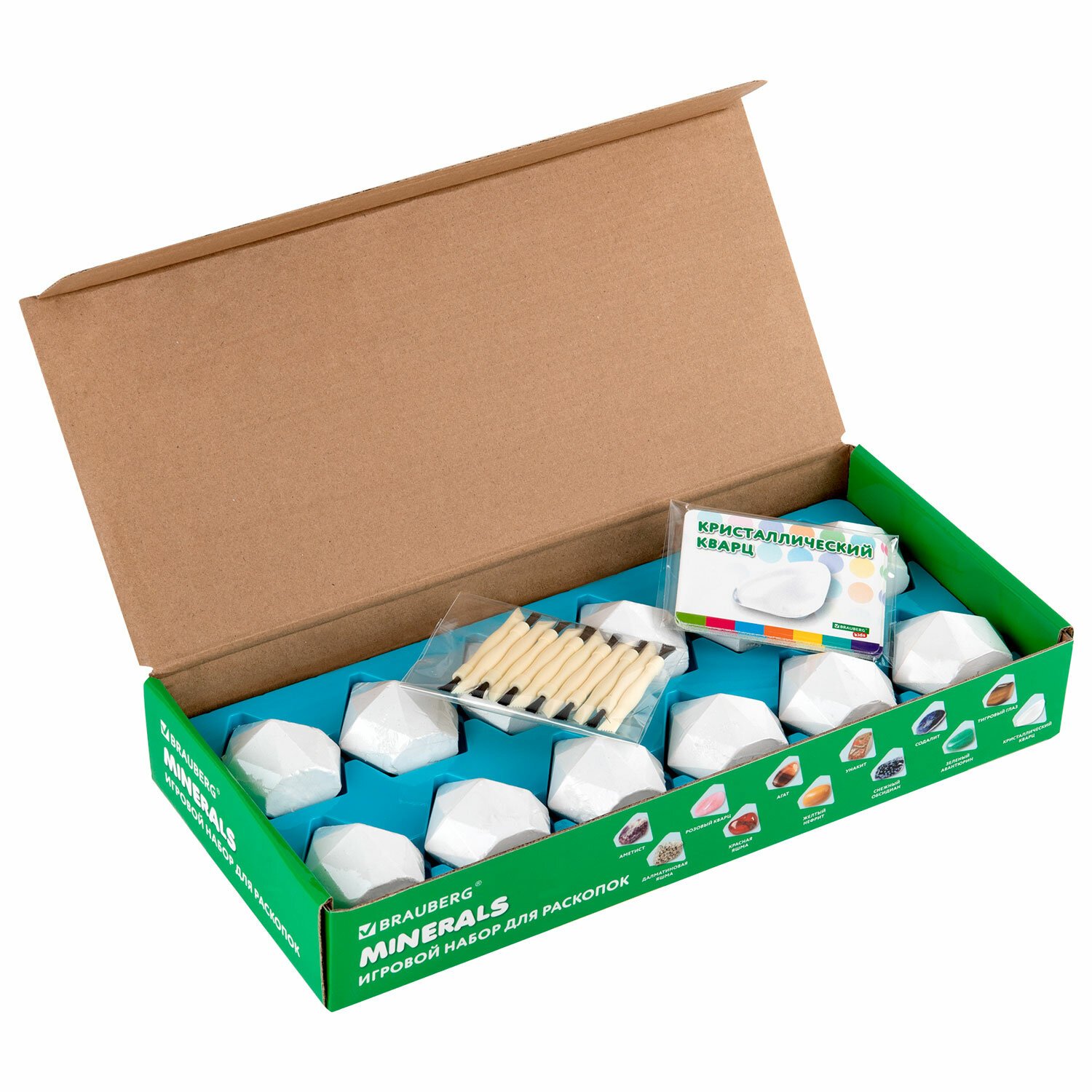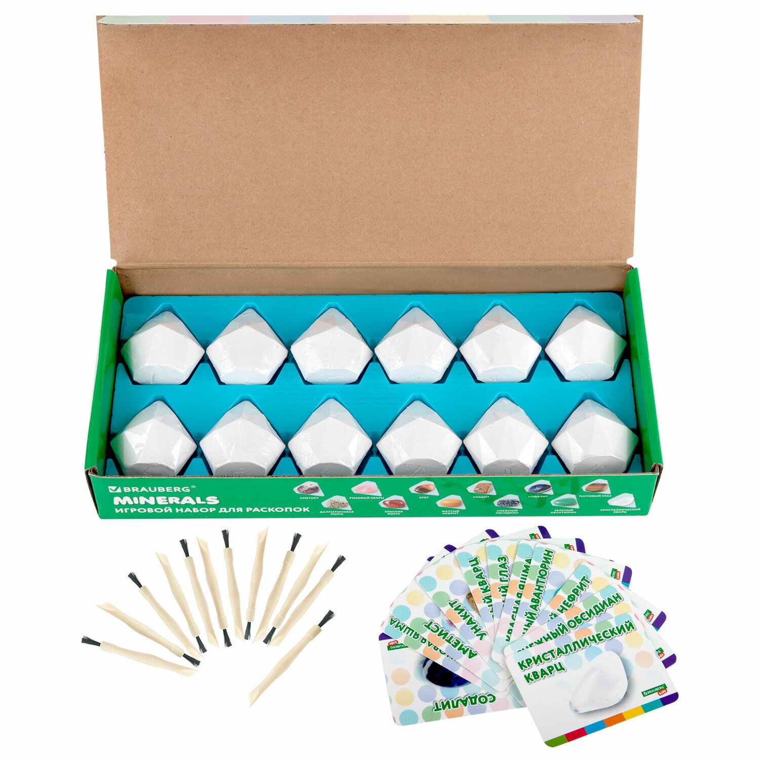 Набор для раскопок "Минералы", 12 видов, карточки, инструменты, BRAUBERG KIDS, 665129