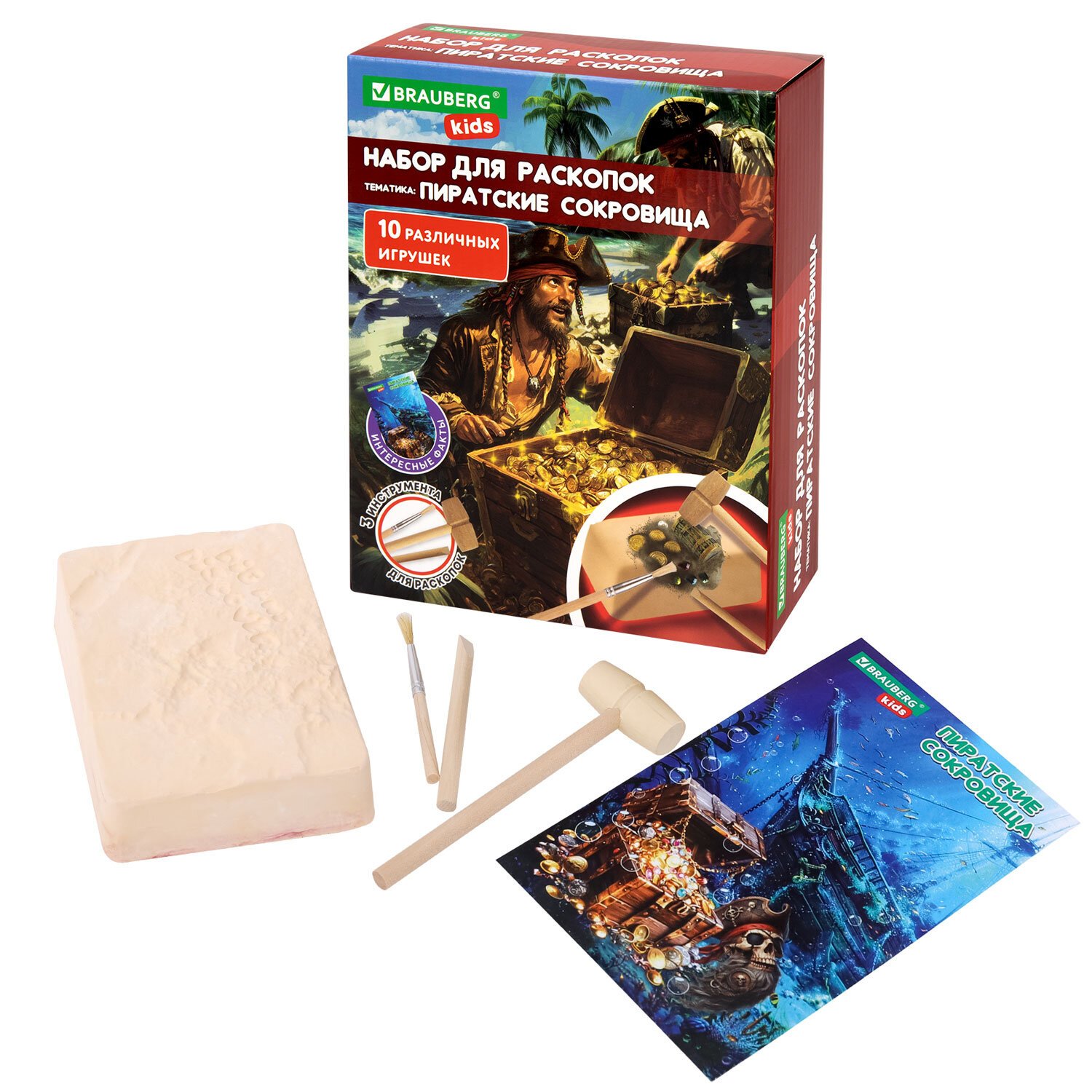 Набор для раскопок "Пиратский клад" 17x21,5 см, инструменты, BRAUBERG KIDS, 665928