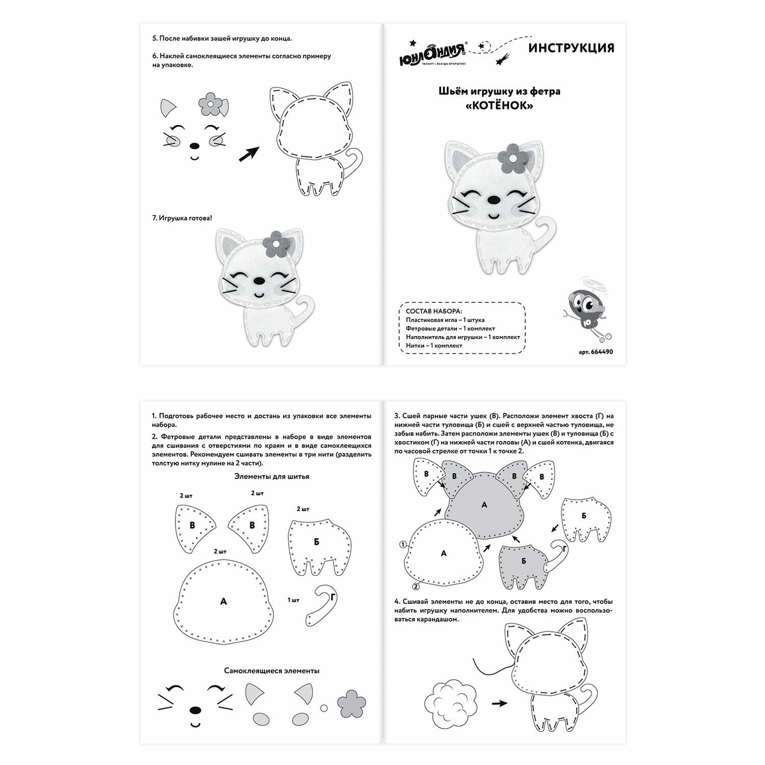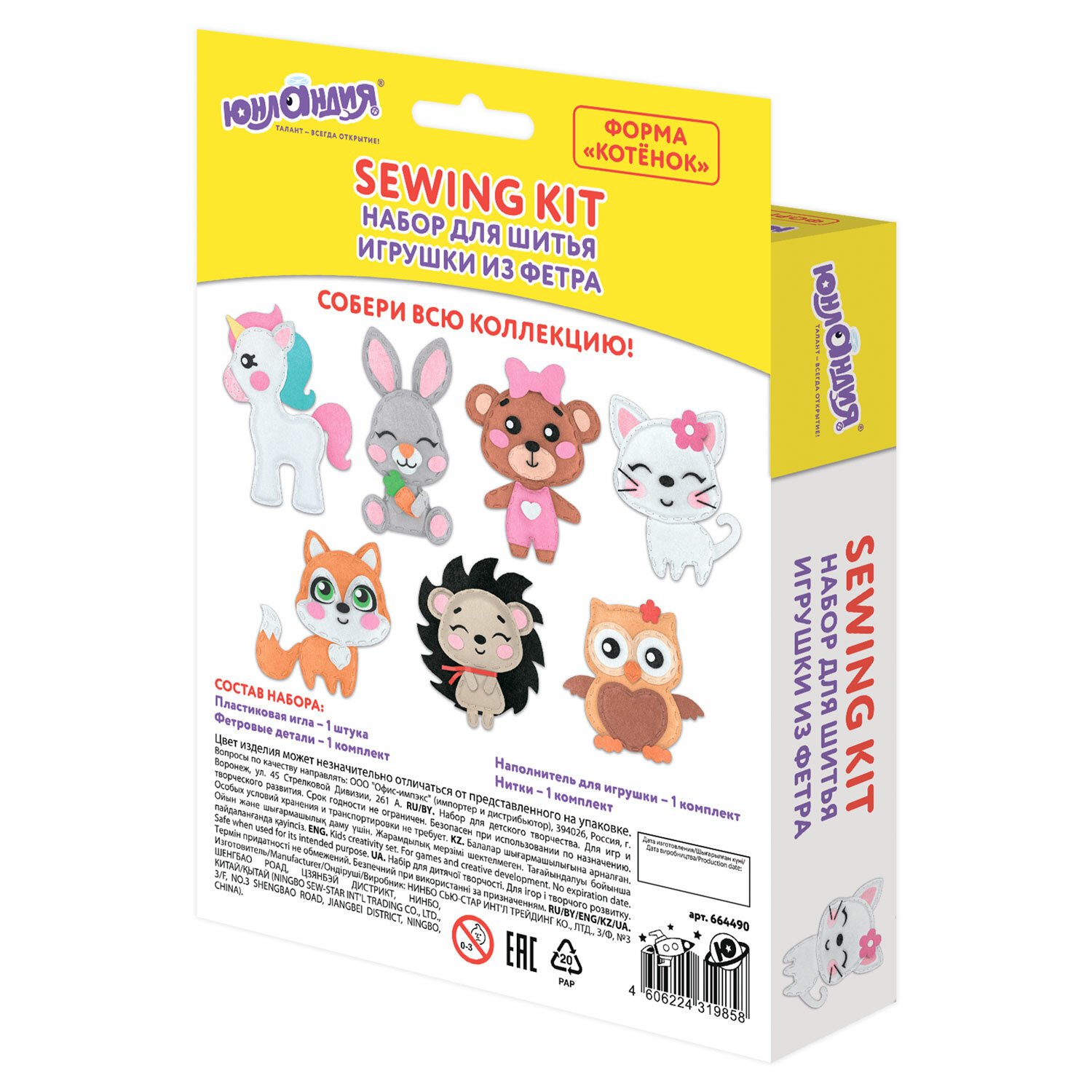 Набор для шитья игрушки из фетра "Котёнок", ЮНЛАНДИЯ, 664490