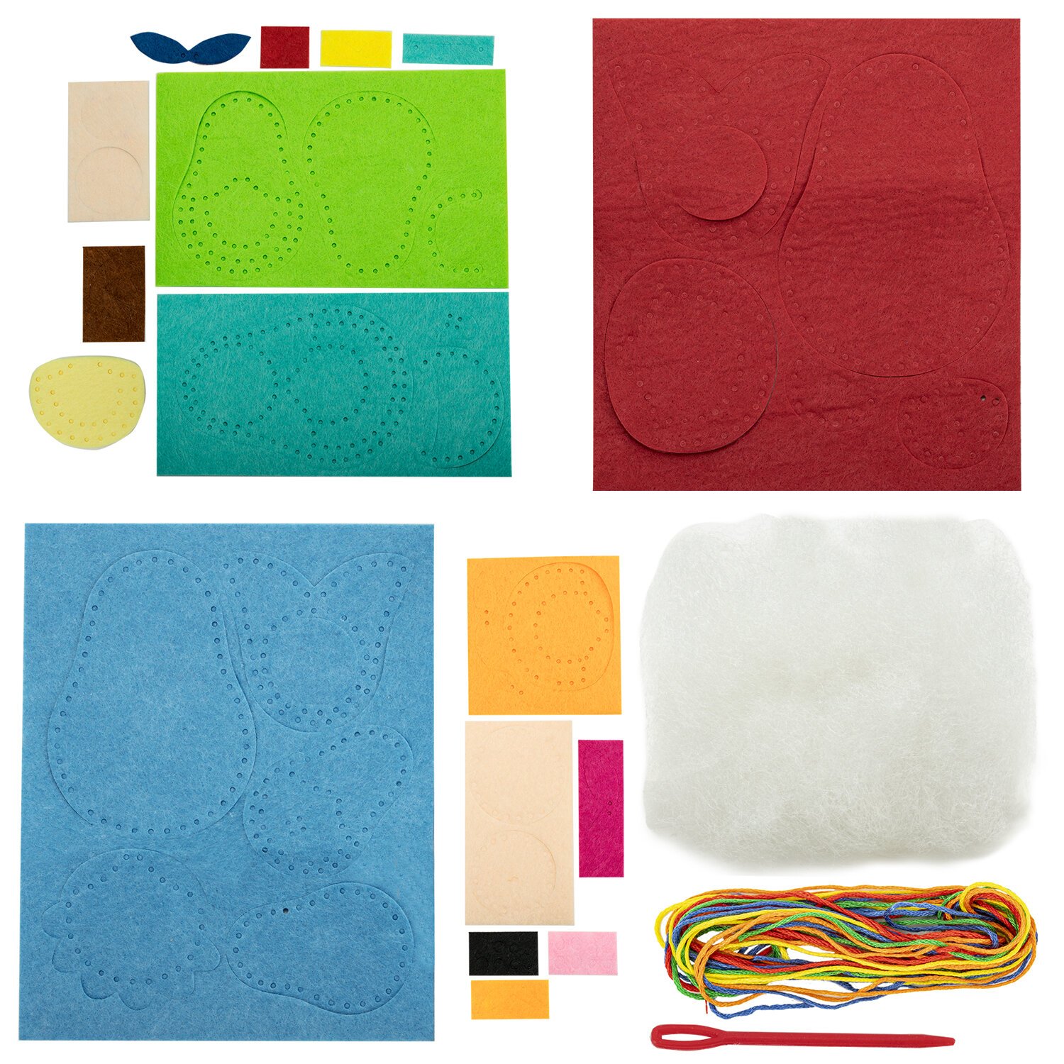 Ребенку не понадобятся клей, ножницы и другие дополнительные приспособления. Благодаря перфорированным отверстиям и пластиковой игле ребенок сможет сделать игрушку легко и безопасно своими руками.