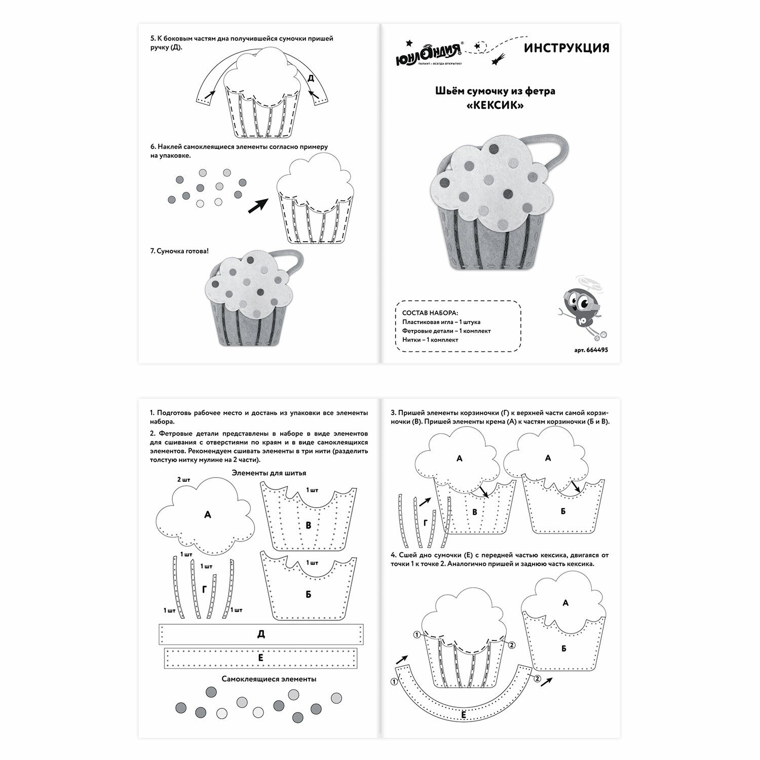 Набор для шитья сумочки из фетра "Кексик", ЮНЛАНДИЯ, 664495