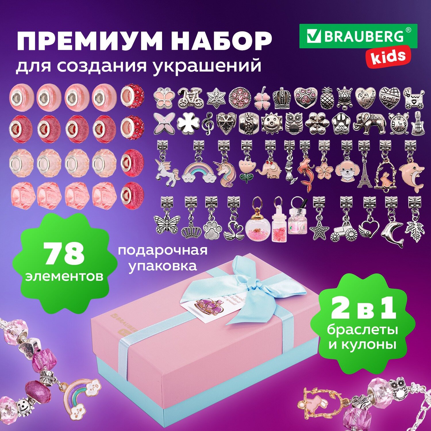 Набор для создания бижутерии и украшений 78 элементов ПРЕМИУМ, BRAUBERG KIDS, 665294