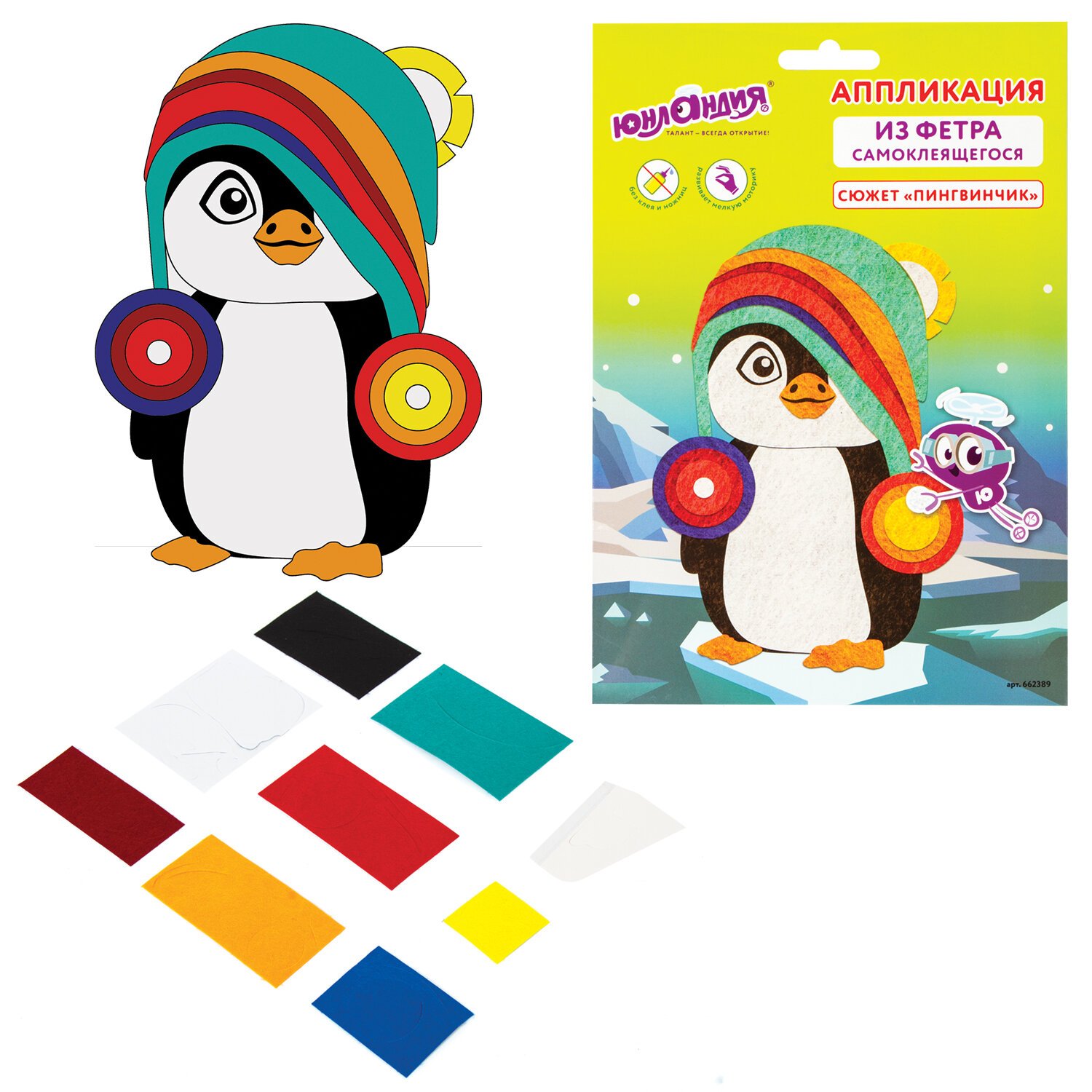 Аппликация из фетра ЮНЛАНДИЯ "Пингвинчик" - это весёлый и занимательный способ развития мелкой моторики, аккуратности и фантазии ребёнка. Все элементы в составе самоклеящиеся, для работы не требуются ножницы и клей.