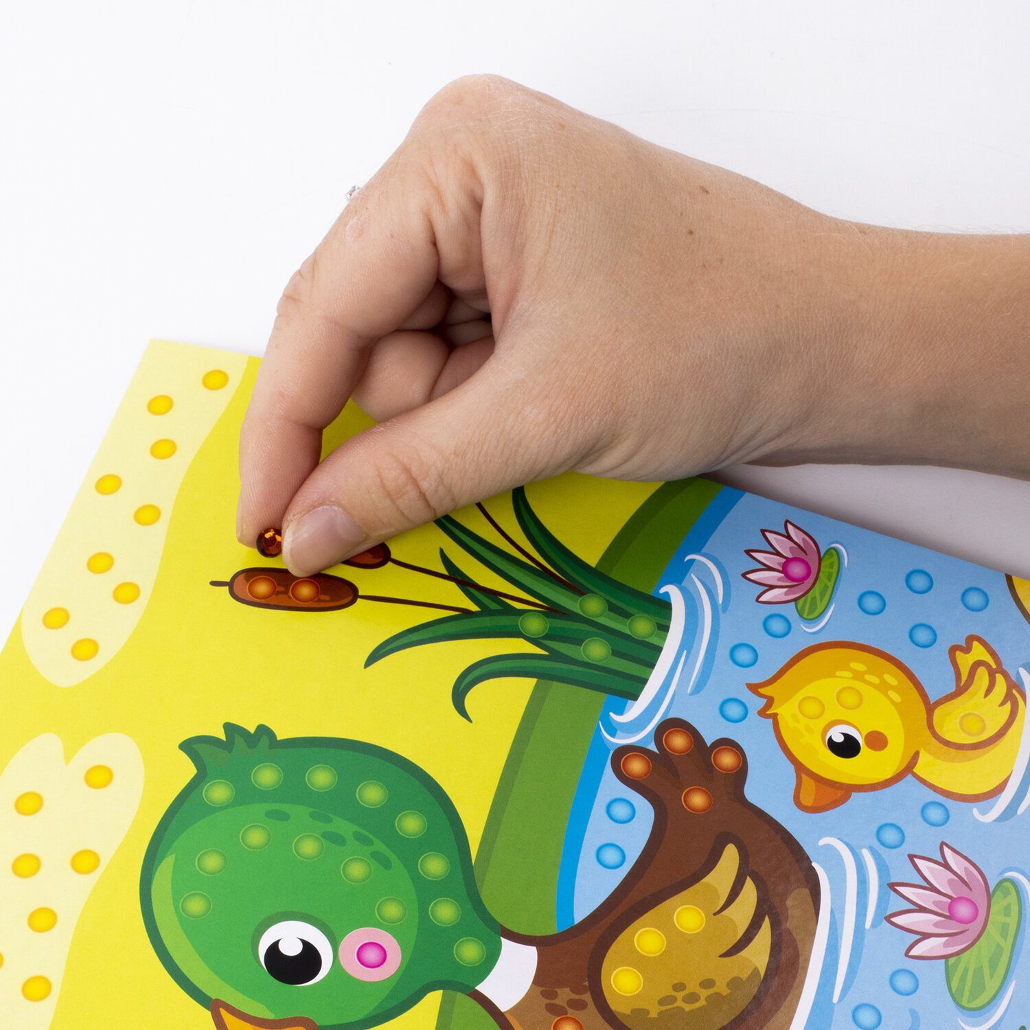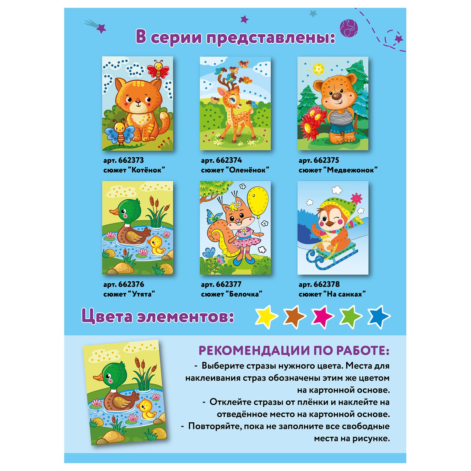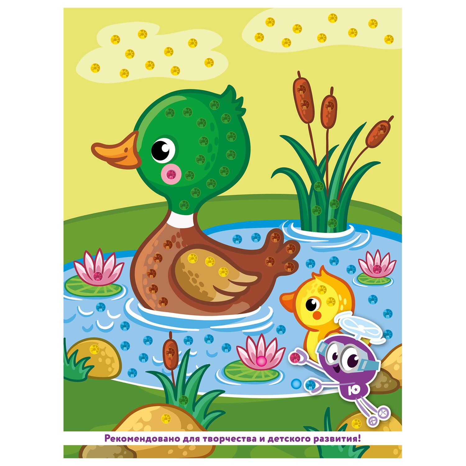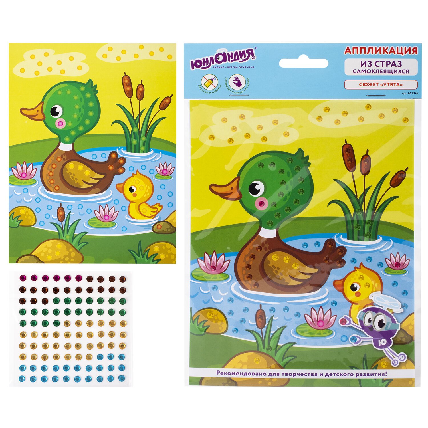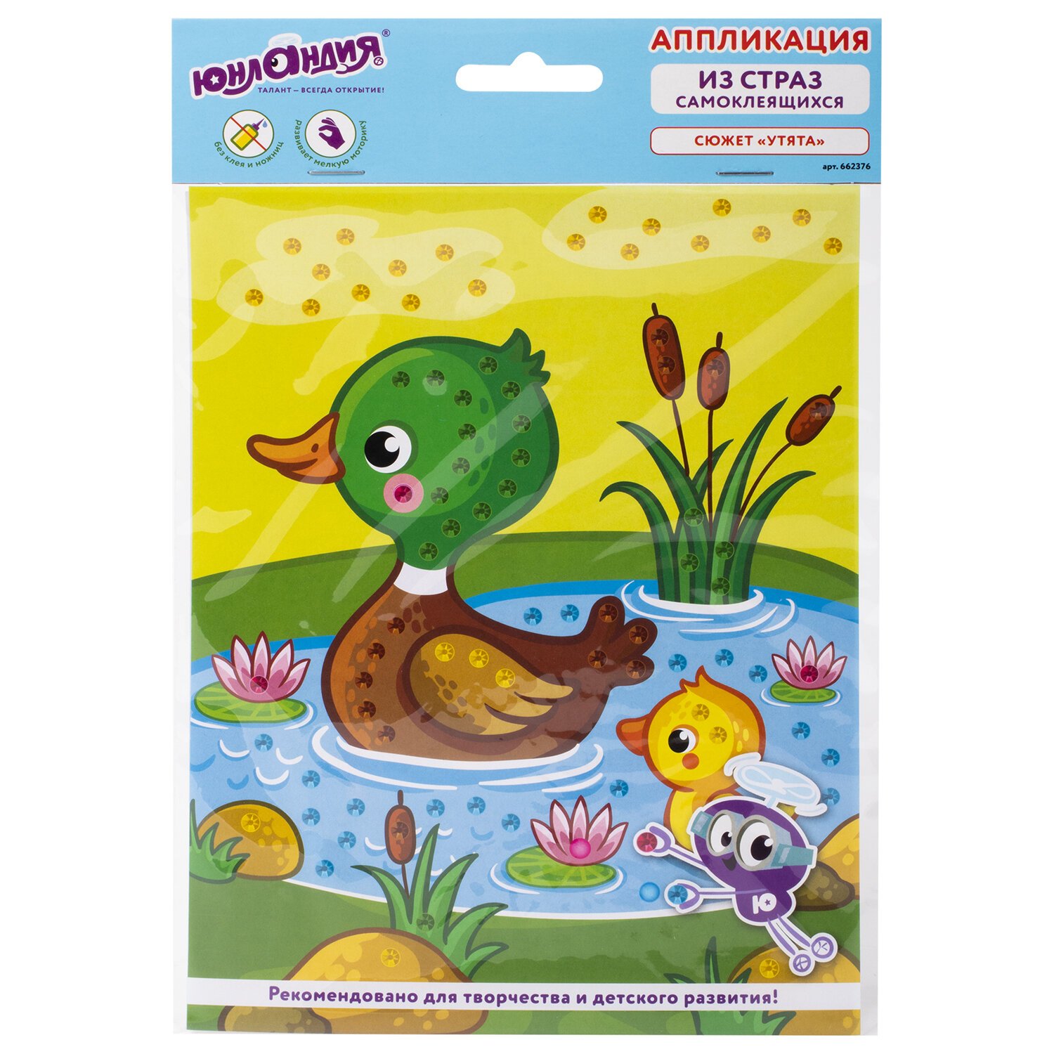 Аппликация из страз ЮНЛАНДИЯ "Утята" - это весёлый и занимательный способ развития мелкой моторики, аккуратности, цветового восприятия и фантазии ребёнка. Все элементы в составе самоклеящиеся, для работы не требуются ножницы и клей.