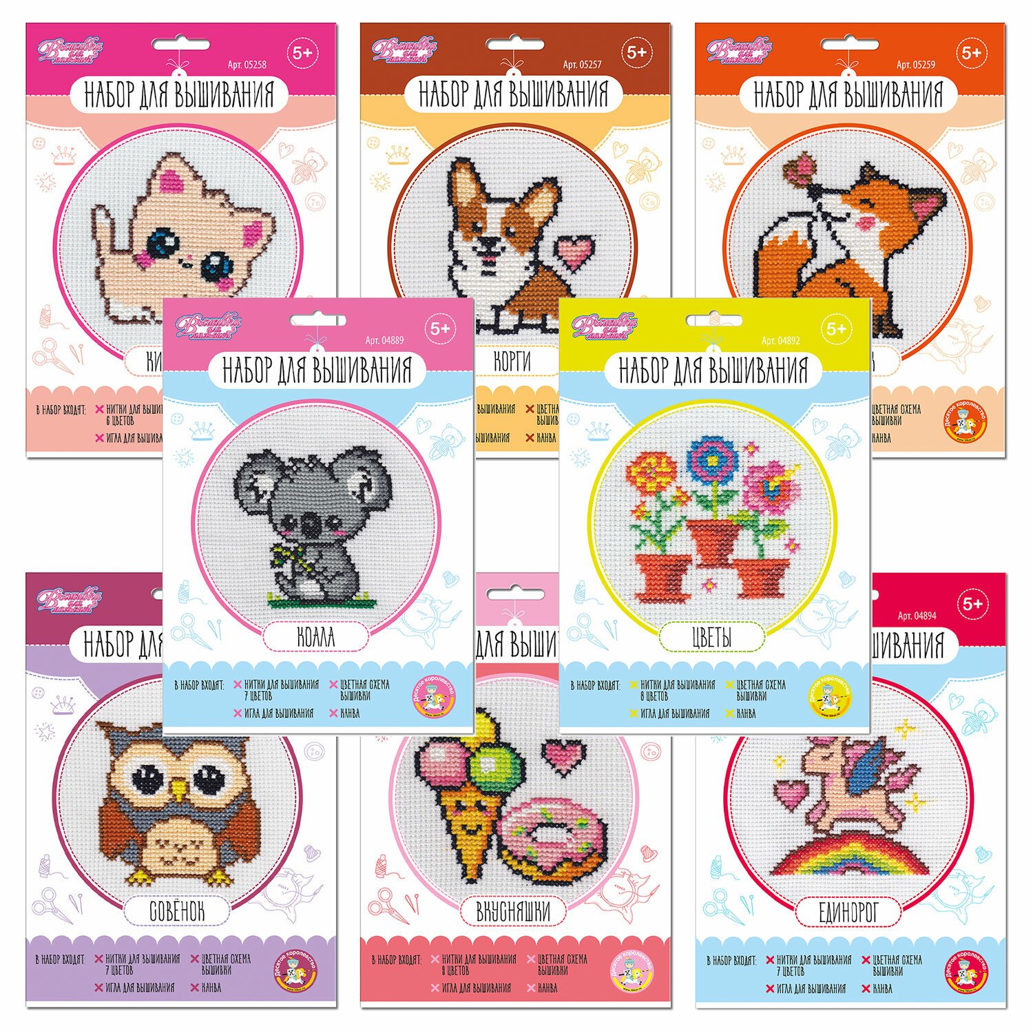 Набор для вышивания, с пяльцами, АССОРТИ, 10КОР
