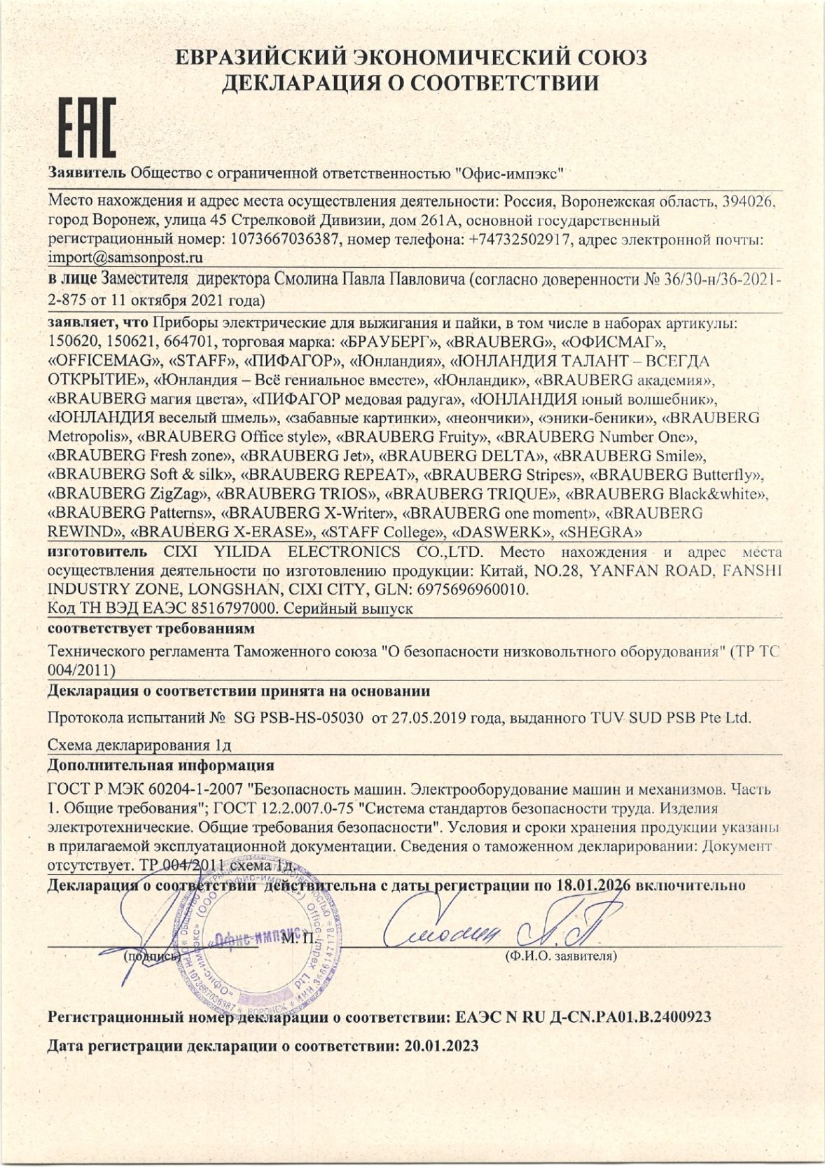 Набор для выжигания и пайки BRAUBERG, 6 насадок + нож для резки пластика, красный, 150621