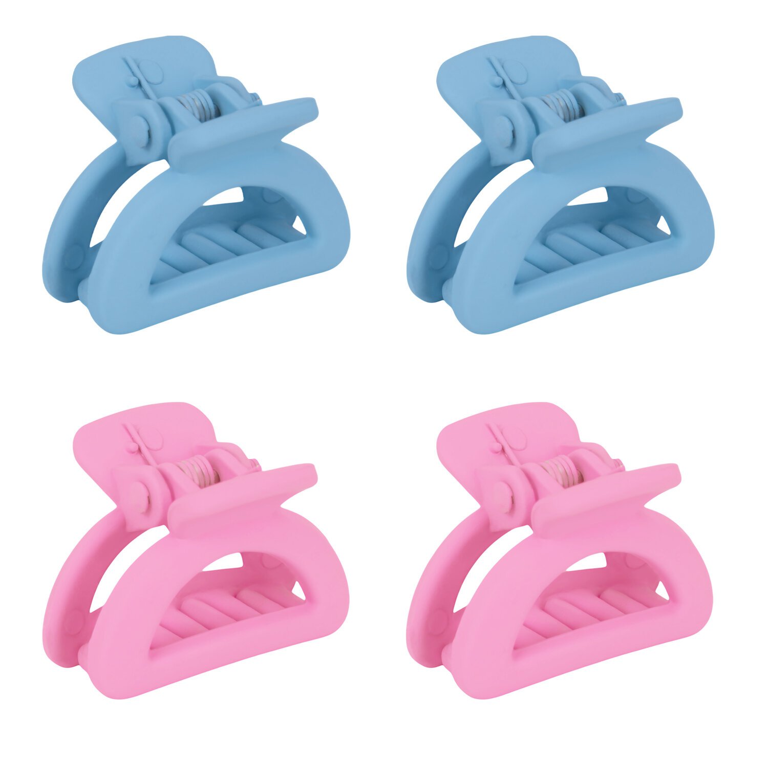 Идеальный стартовый набор: 4 краба с мягким покрытием soft touch и 8 резинок в нежных пастельных тонах. Размеры аксессуаров (2,5–3 см) подойдут для детских причесок, тонких волос или создания аккуратных пучков.
