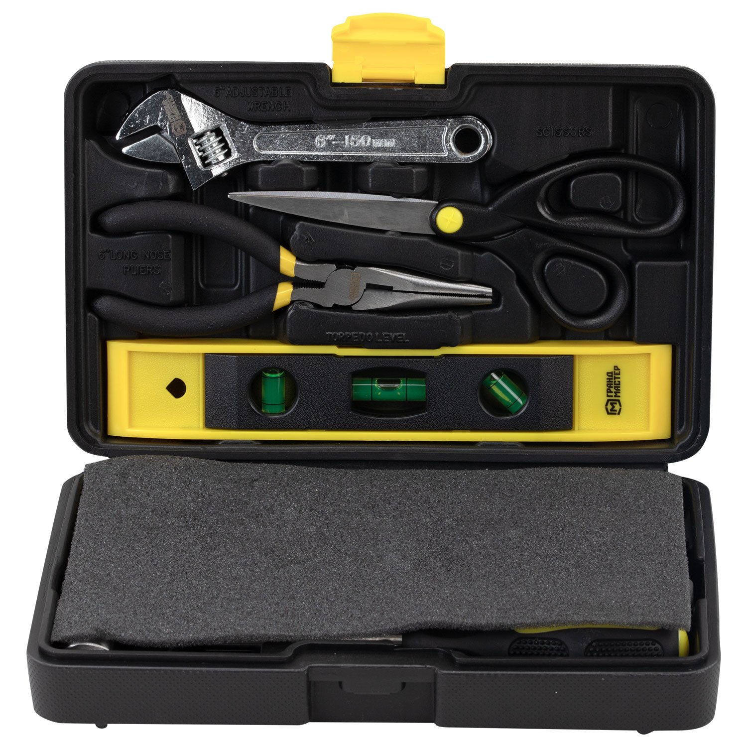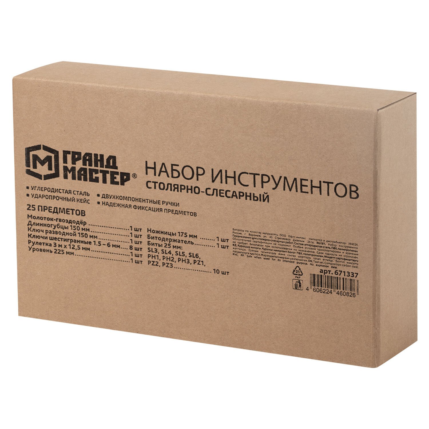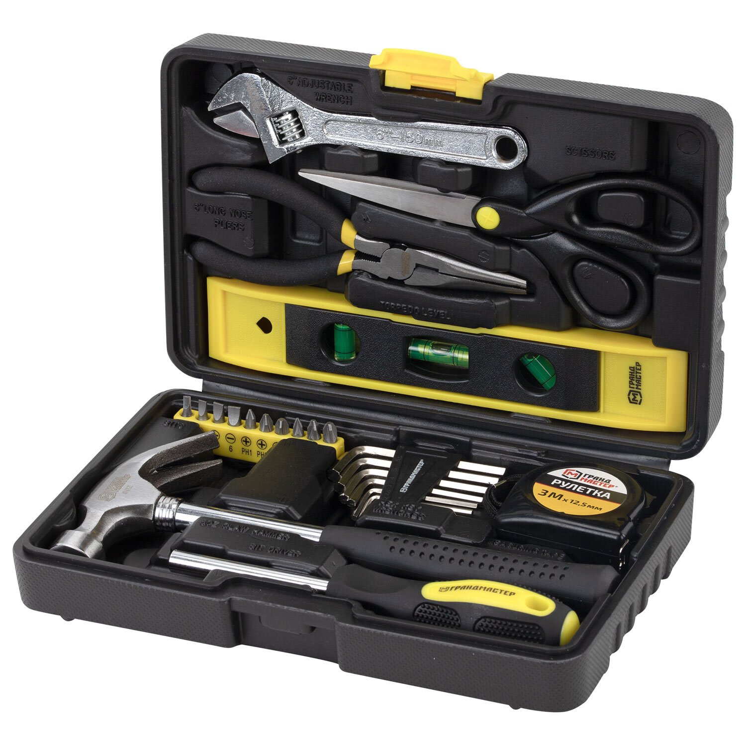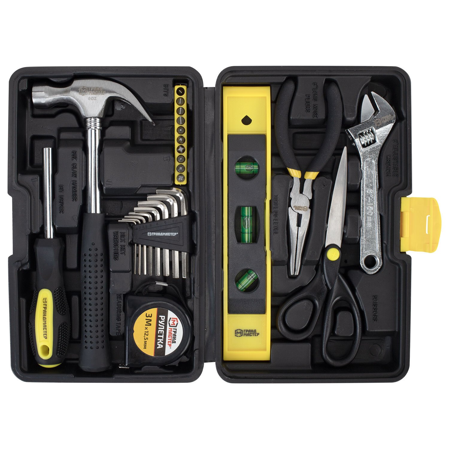 Столярно-слесарный набор ГРАНДМАСТЕР включает в себя необходимые инструменты для использования в быту. Состав набора позволит выполнить мелкий ремонт дома и на даче, а также пригодится для ремонта колесной и бытовой техники.