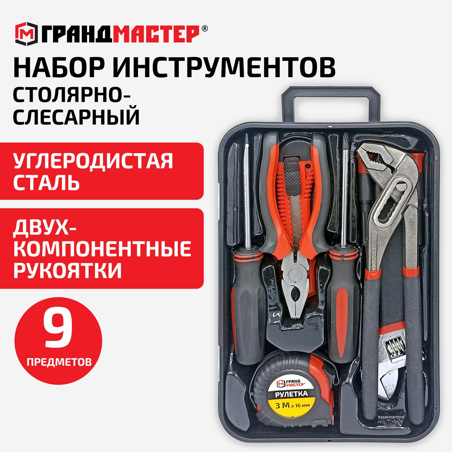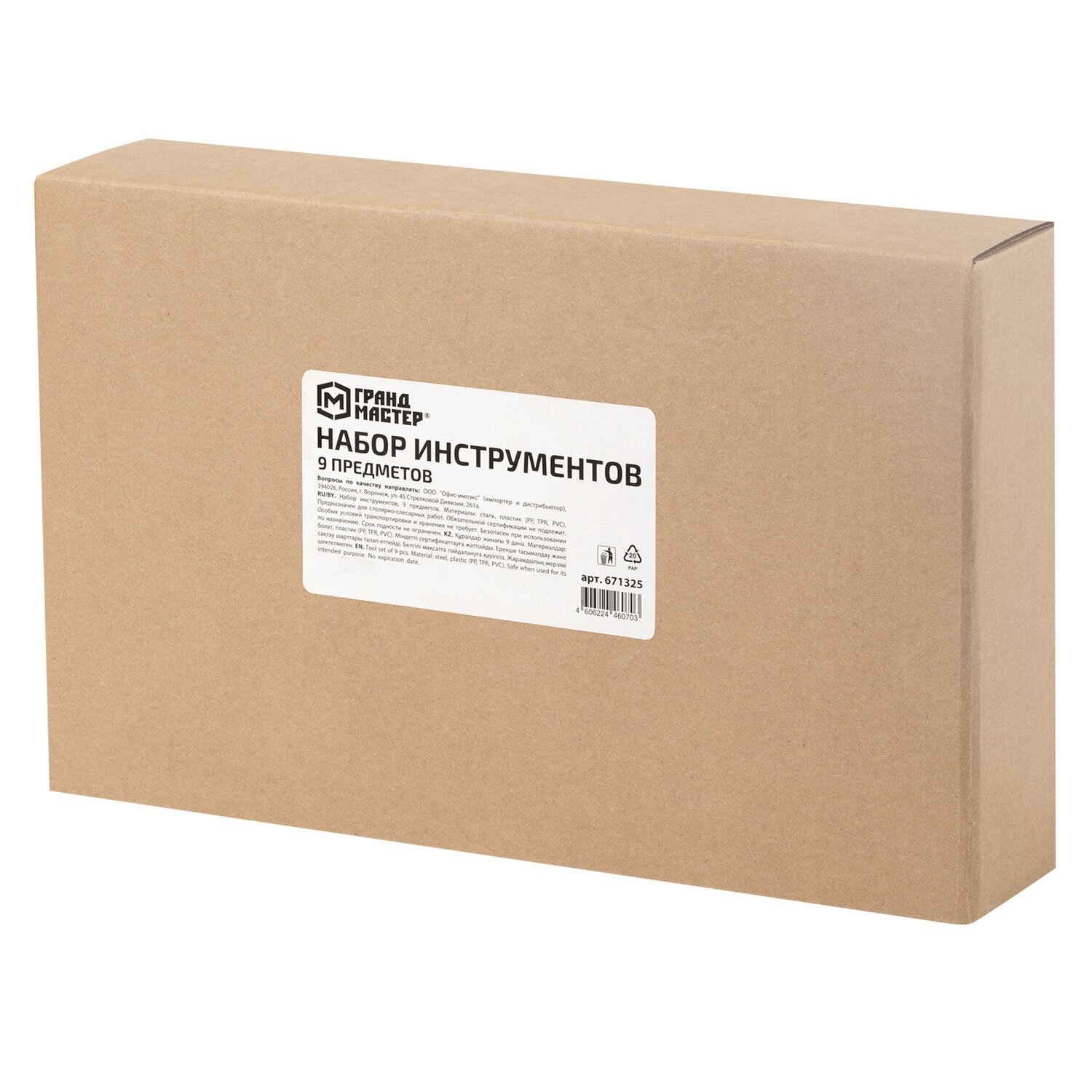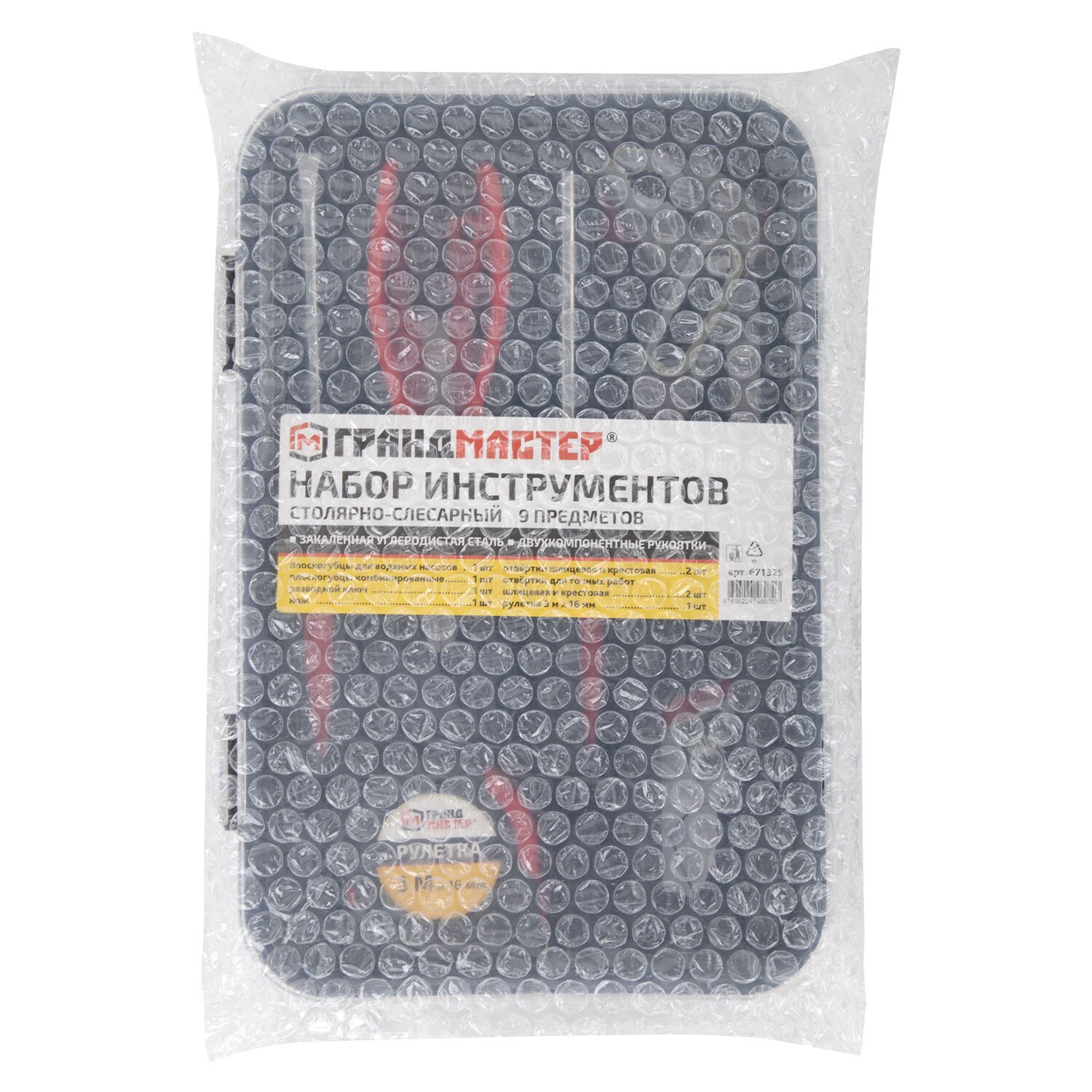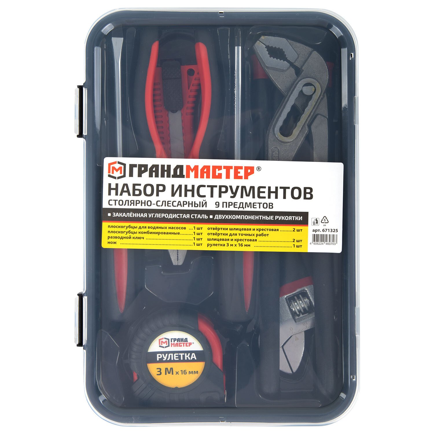 Набор инструментов столярно-слесарный, 9 предметов, пластиковый бокс, ГРАНДМАСТЕР, 671325