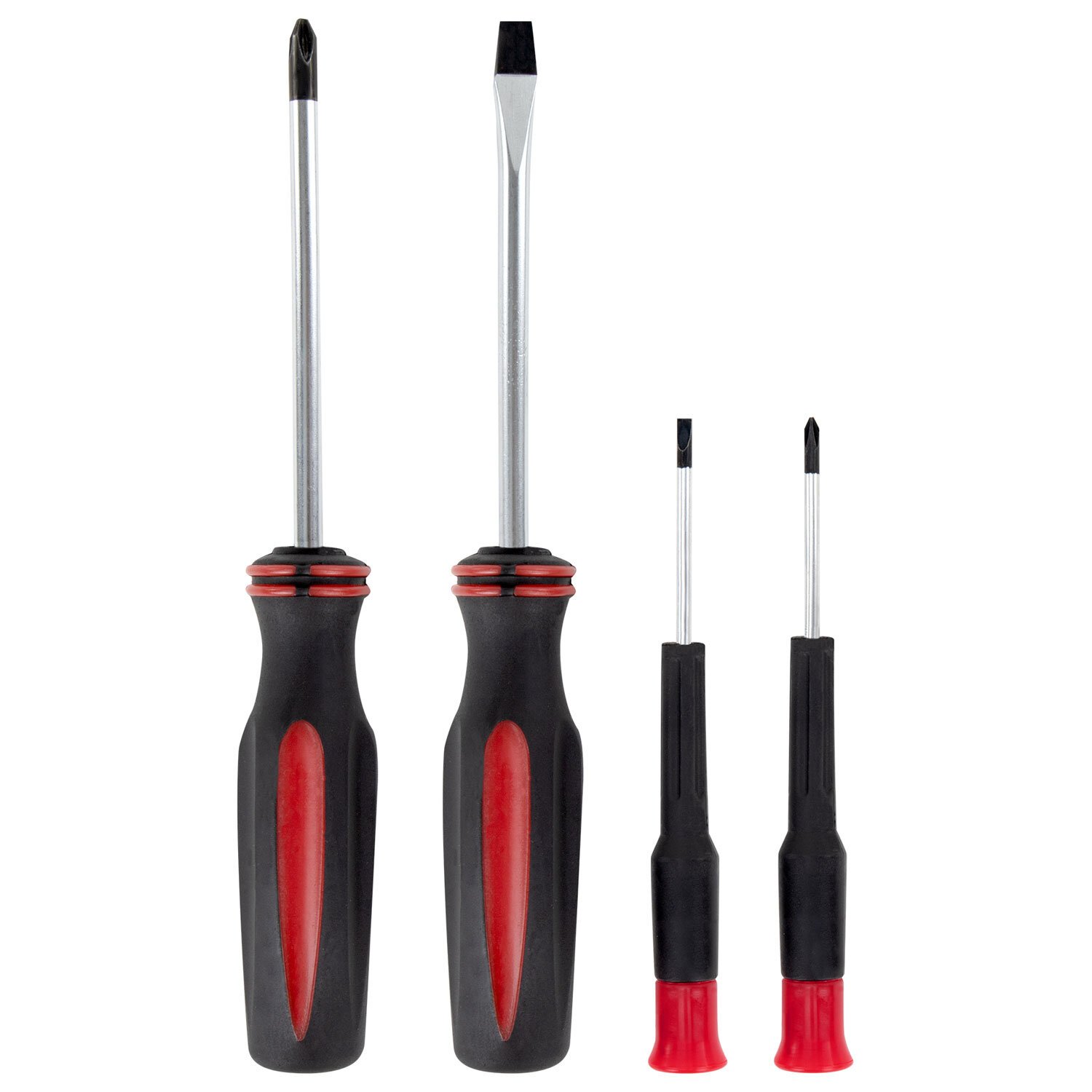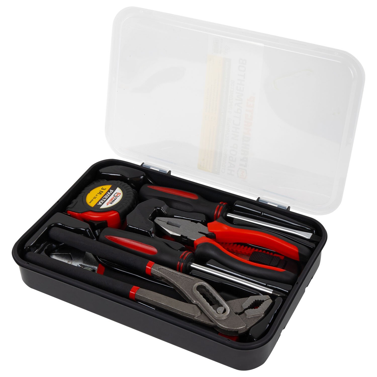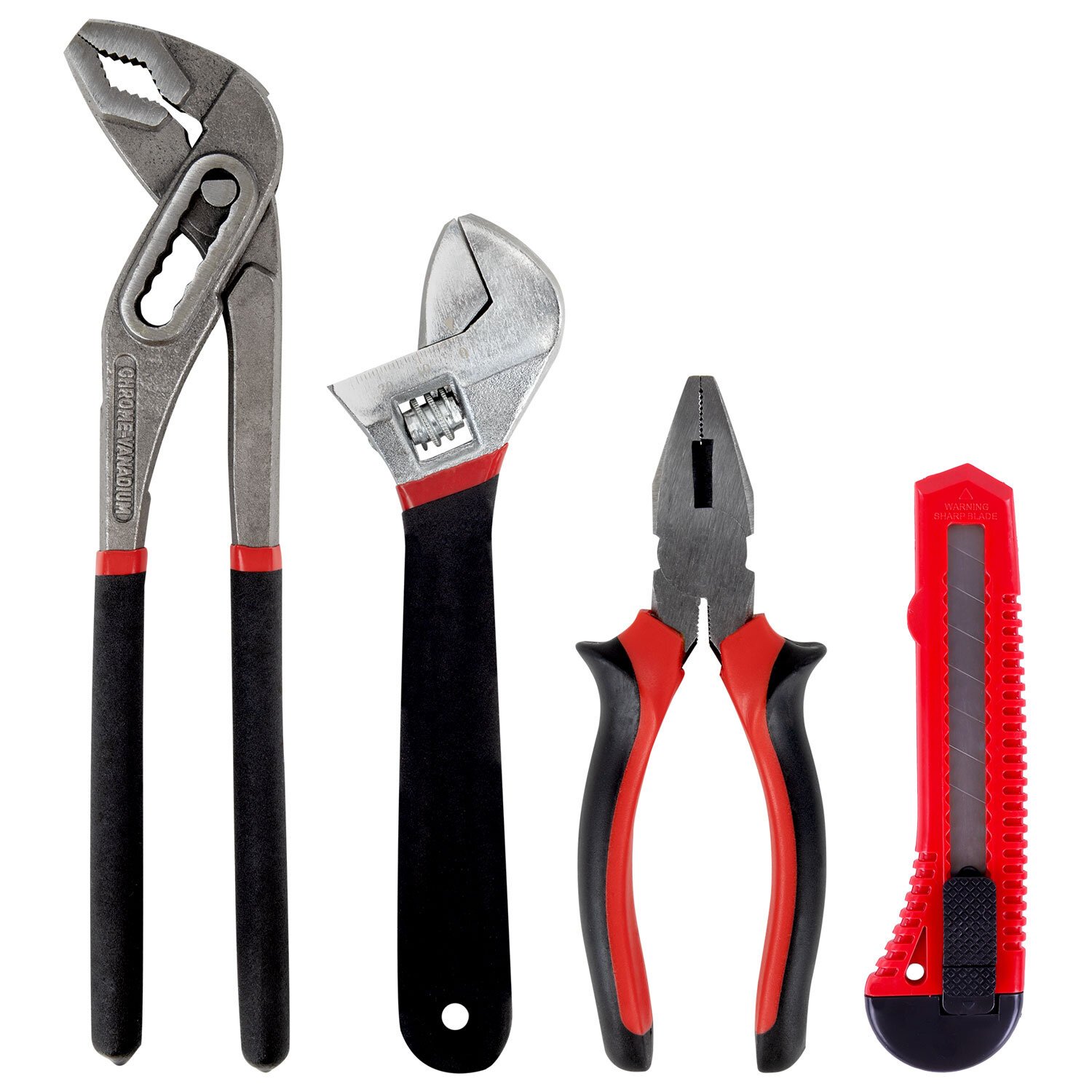 Инструменты изготовлены из закалённой углеродистой стали. Рукоятки выполнены из нескользящего ПВХ для максимального комфорта и безопасности во время использования. Набор предназначен для столярно-слесарных работ при осуществлении мелкого ремонта в быту.