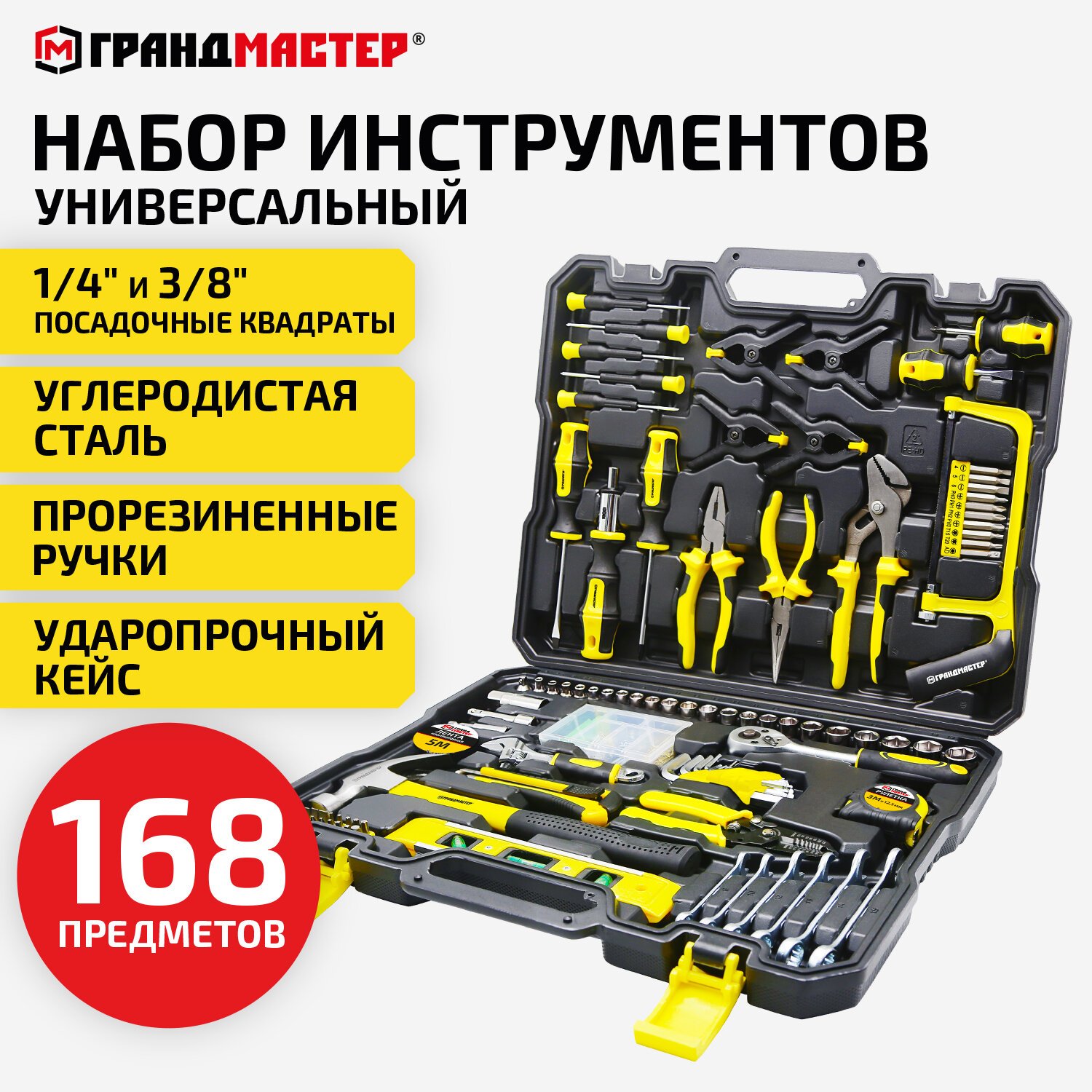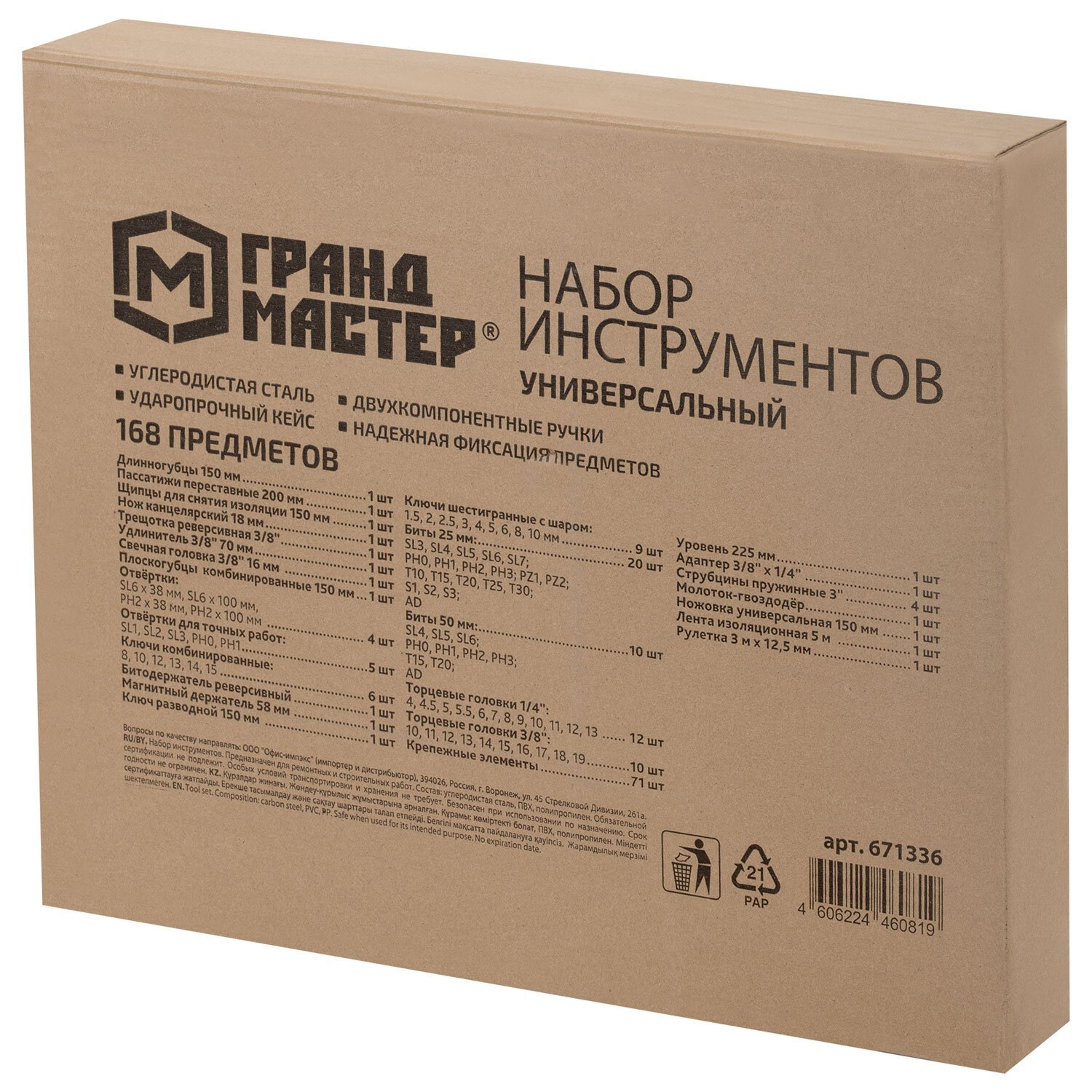 Набор инструментов универсальный, 168 предметов, пластиковый кейс, ГРАНДМАСТЕР, 671336