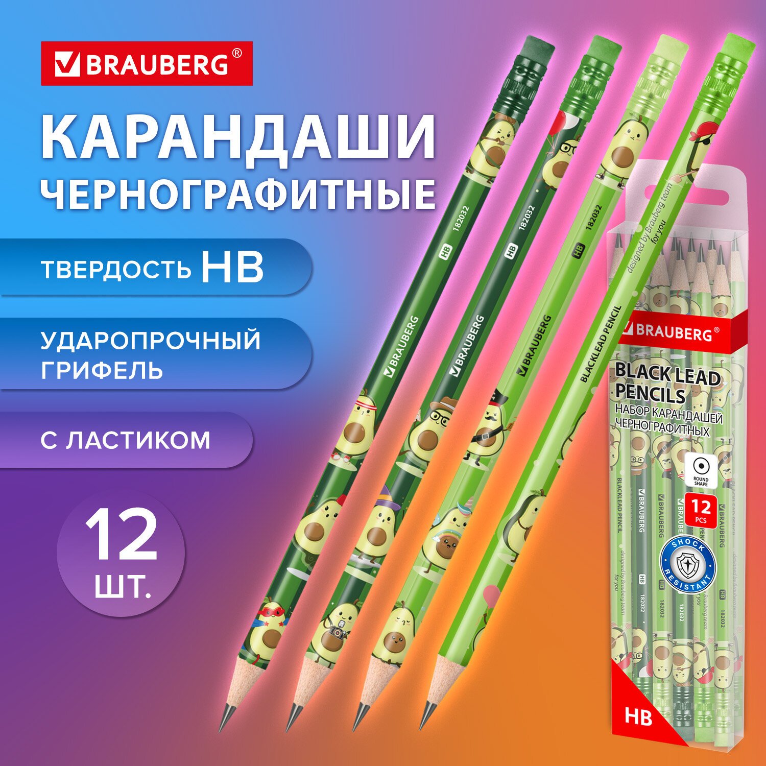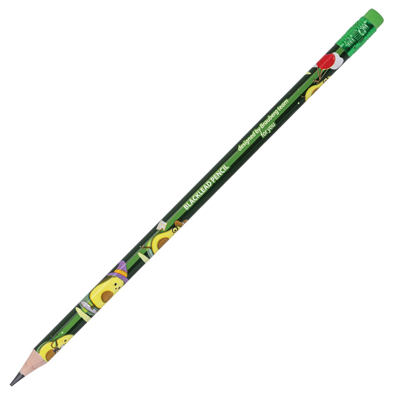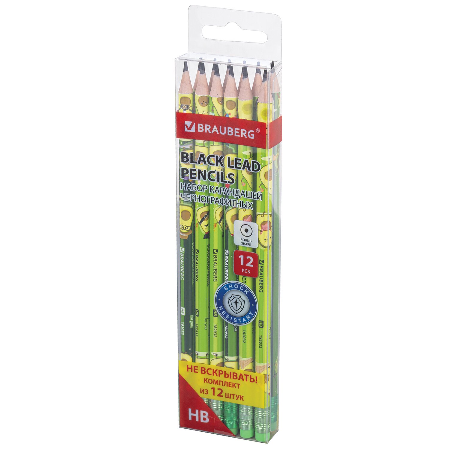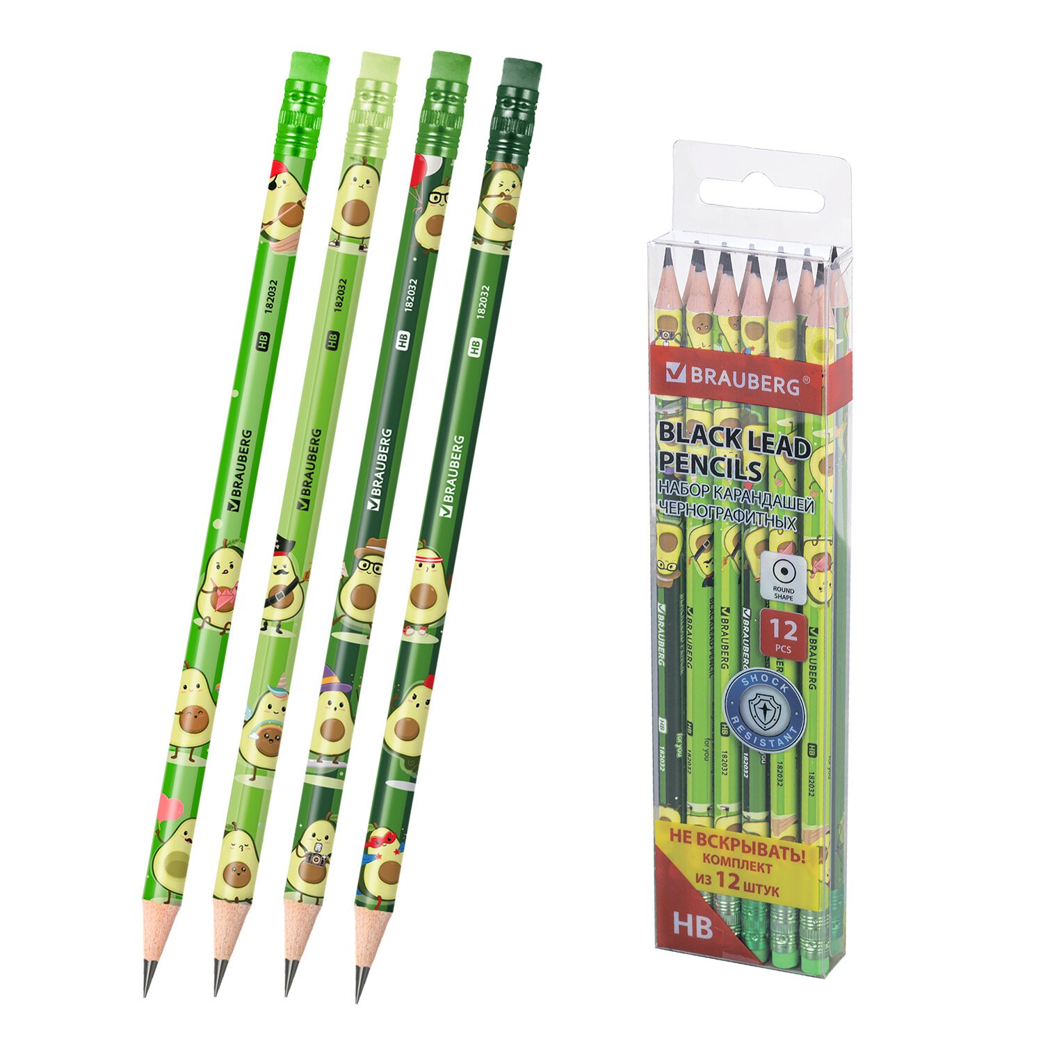 Набор карандашей чернографитных BRAUBERG "AVOCADO", 12 штук, HB, с ластиком, 182032