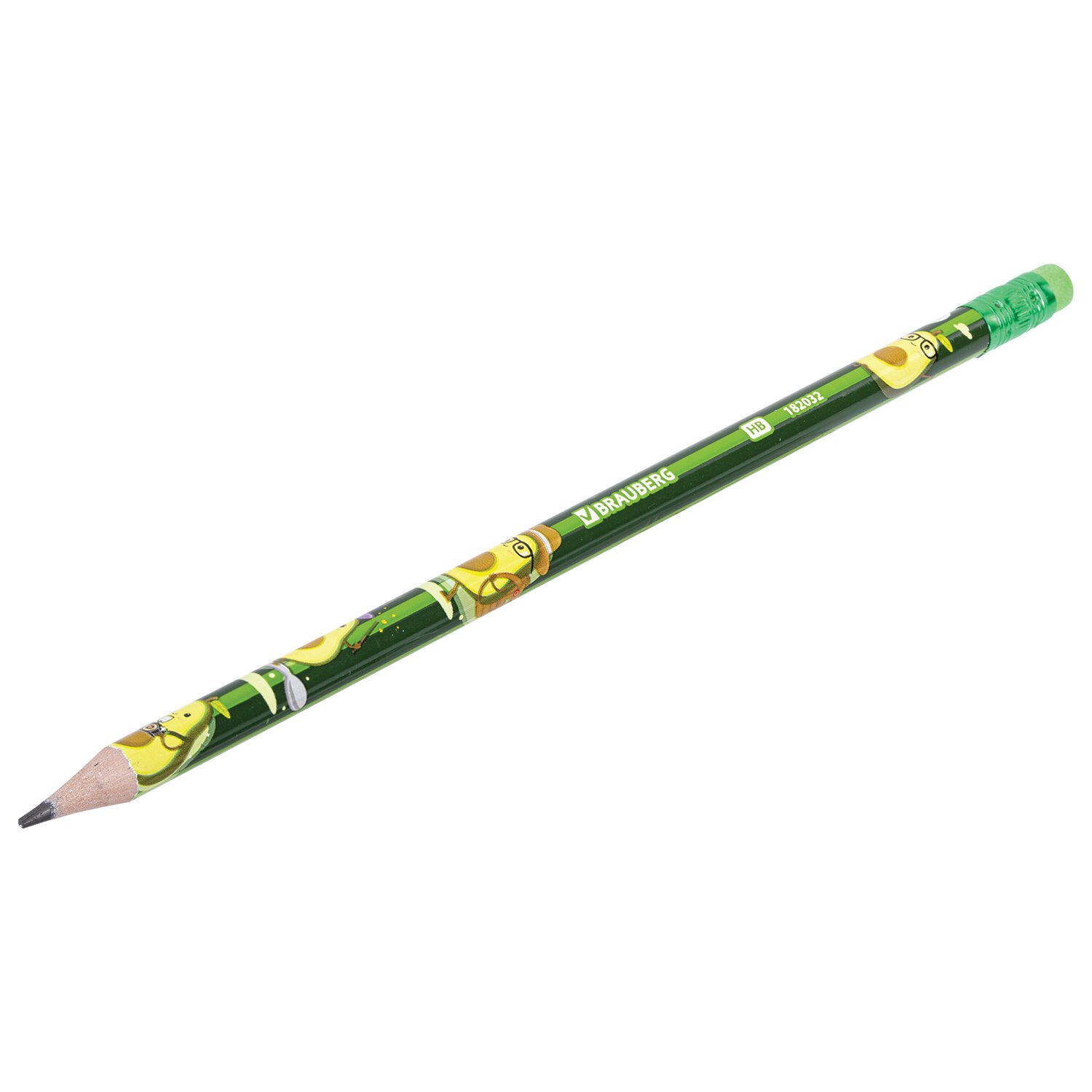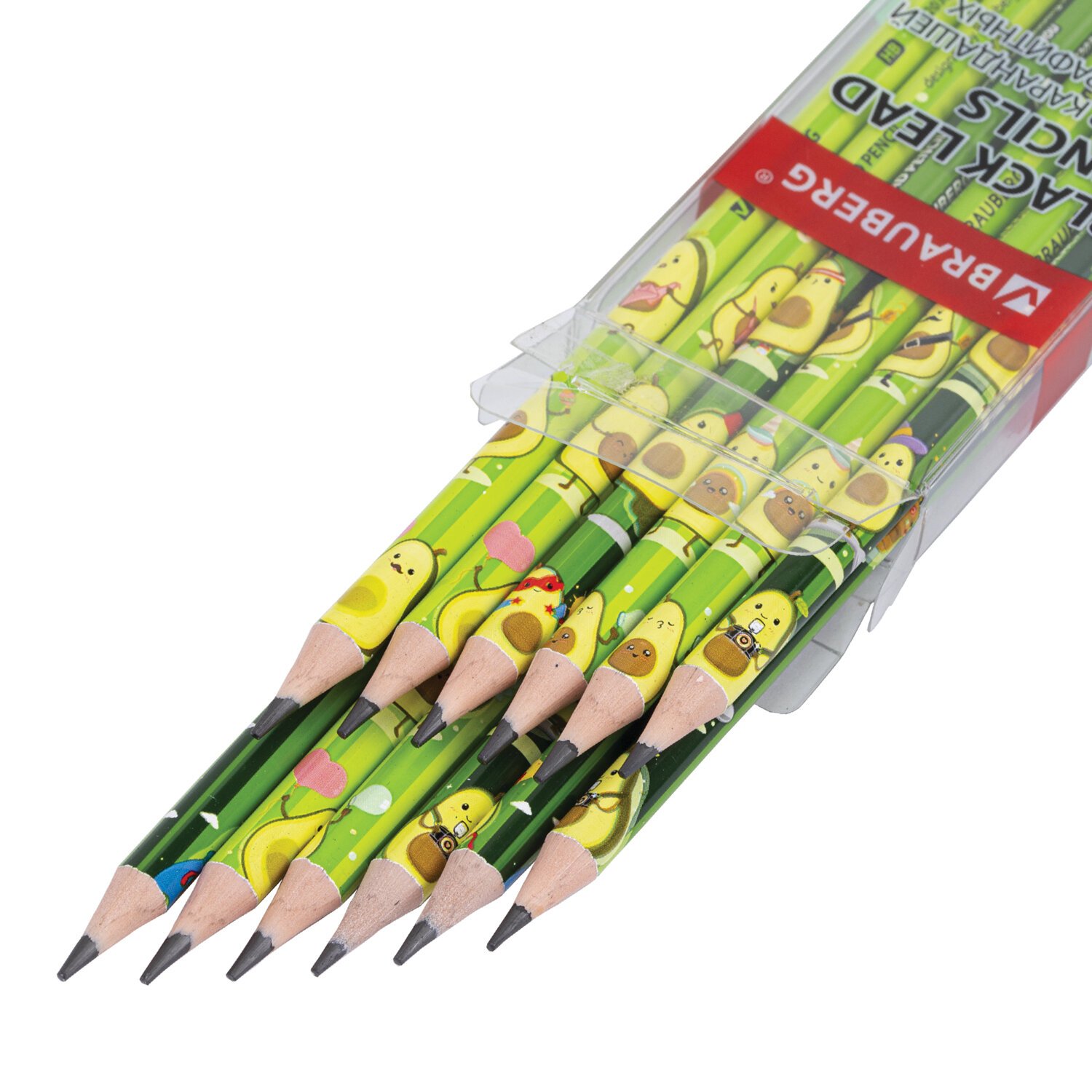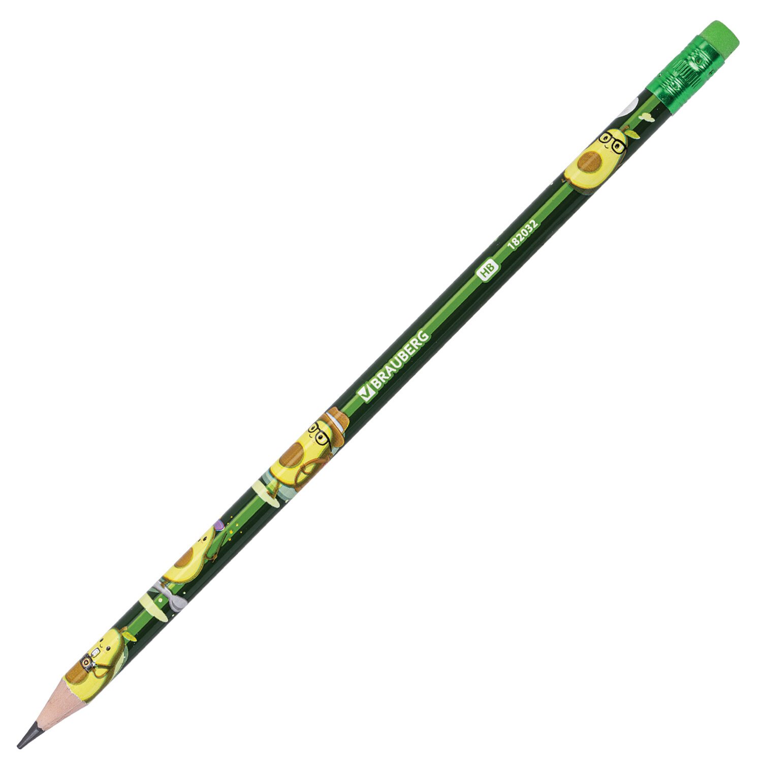 Набор карандашей чернографитных BRAUBERG "AVOCADO", 12 штук, HB, с ластиком, 182032