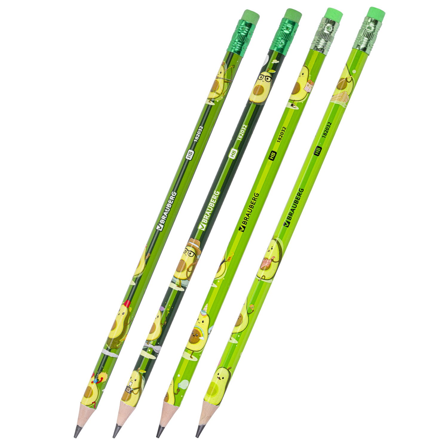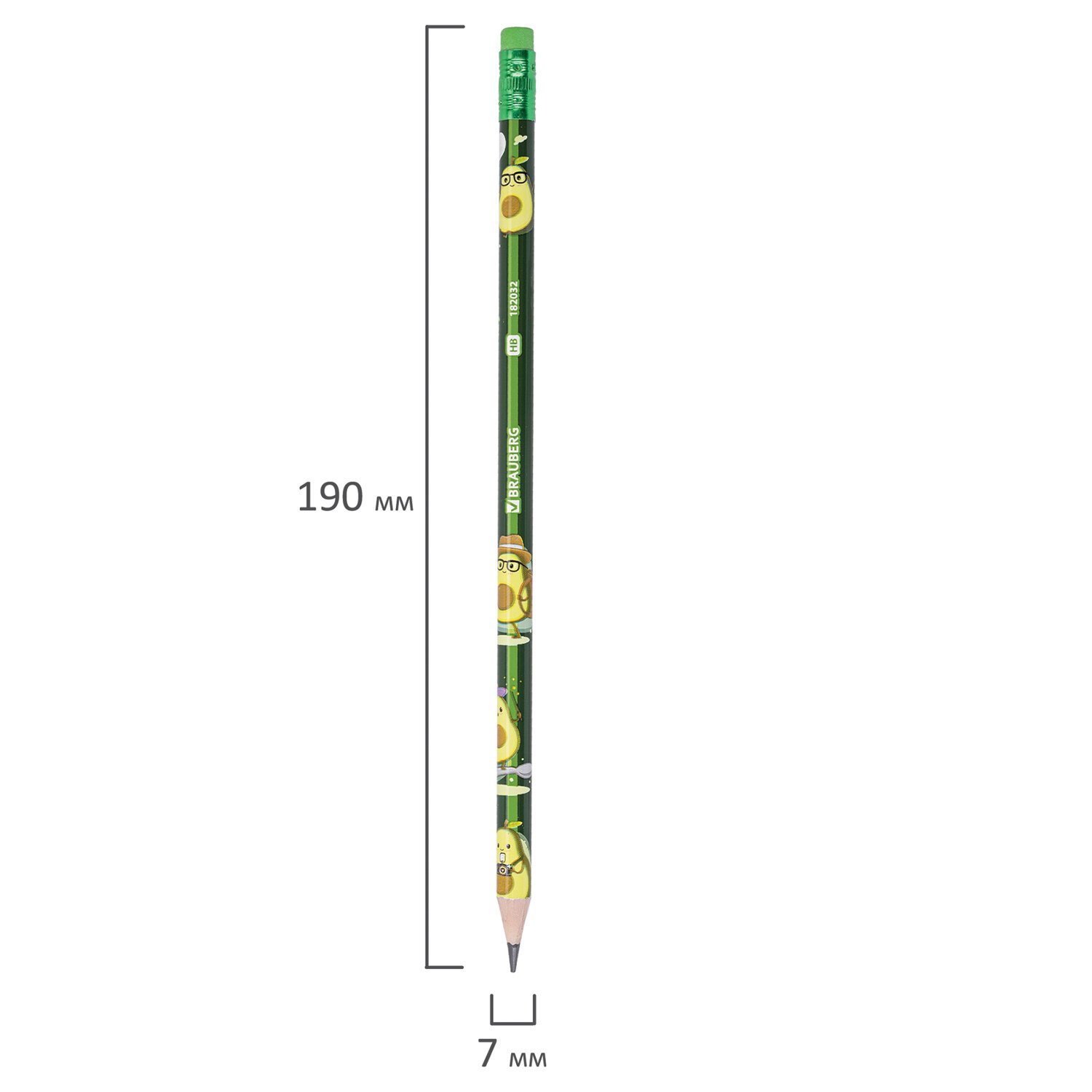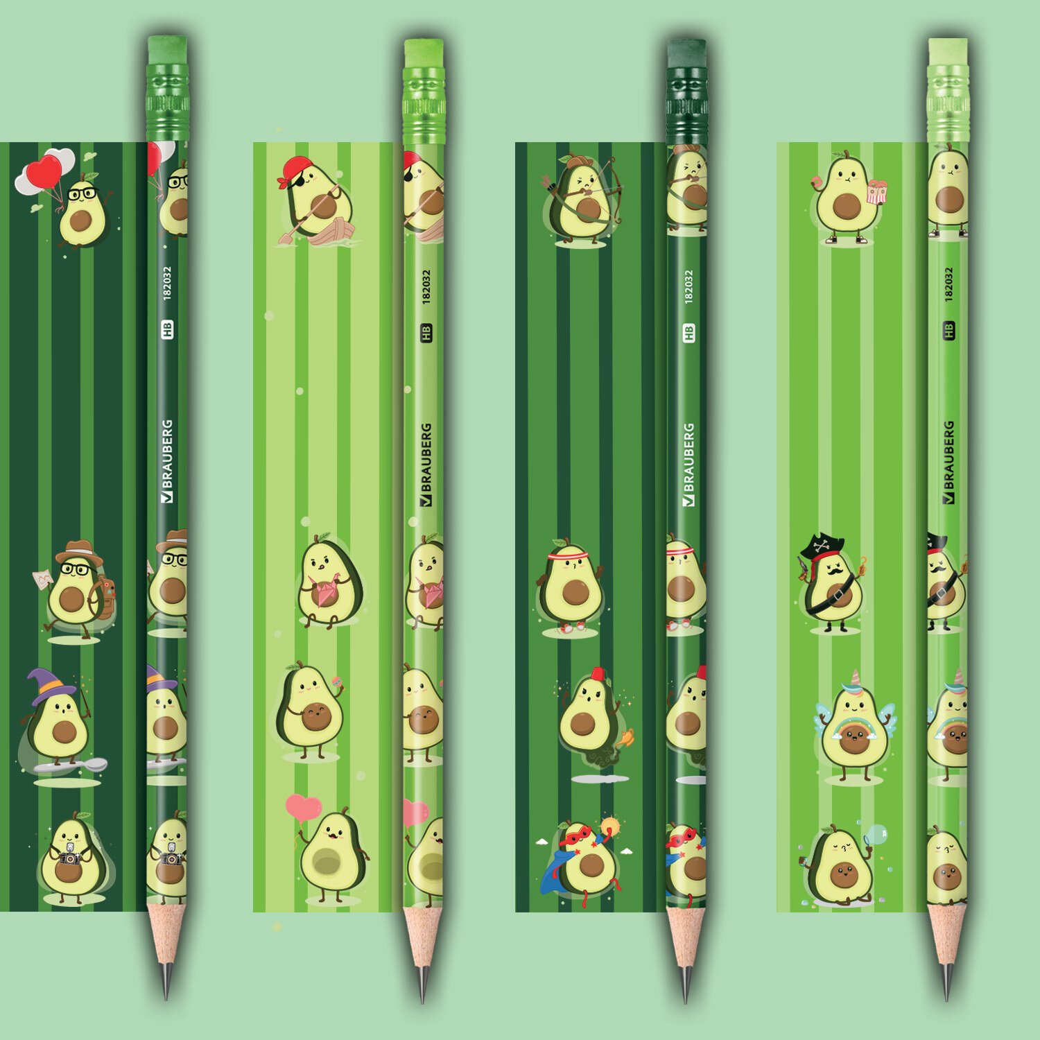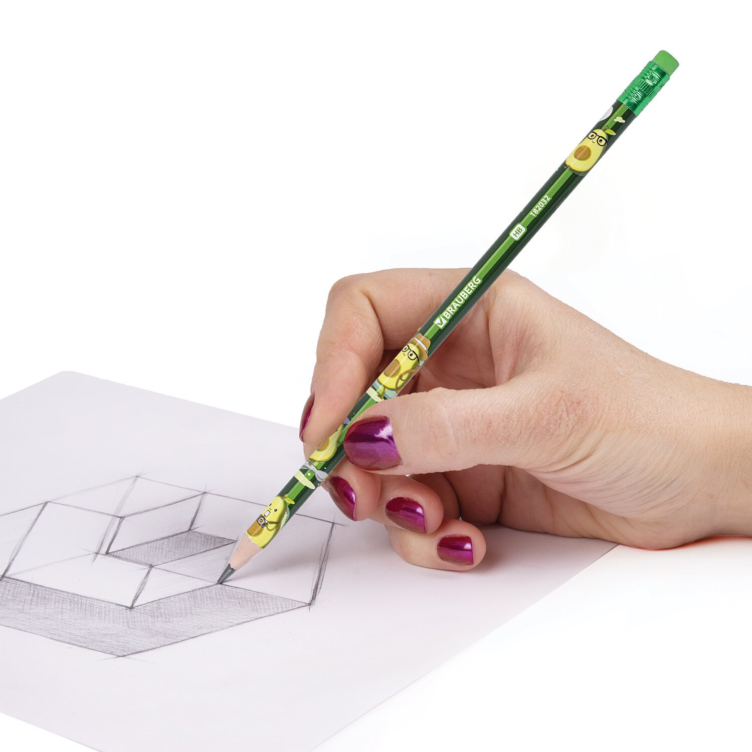 Набор карандашей чернографитных BRAUBERG "AVOCADO", 12 штук, HB, с ластиком, 182032