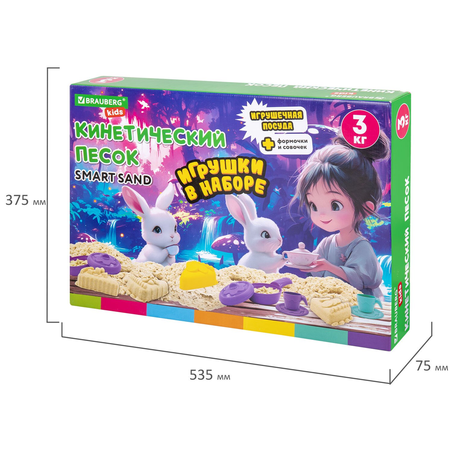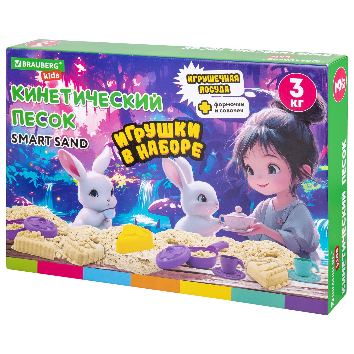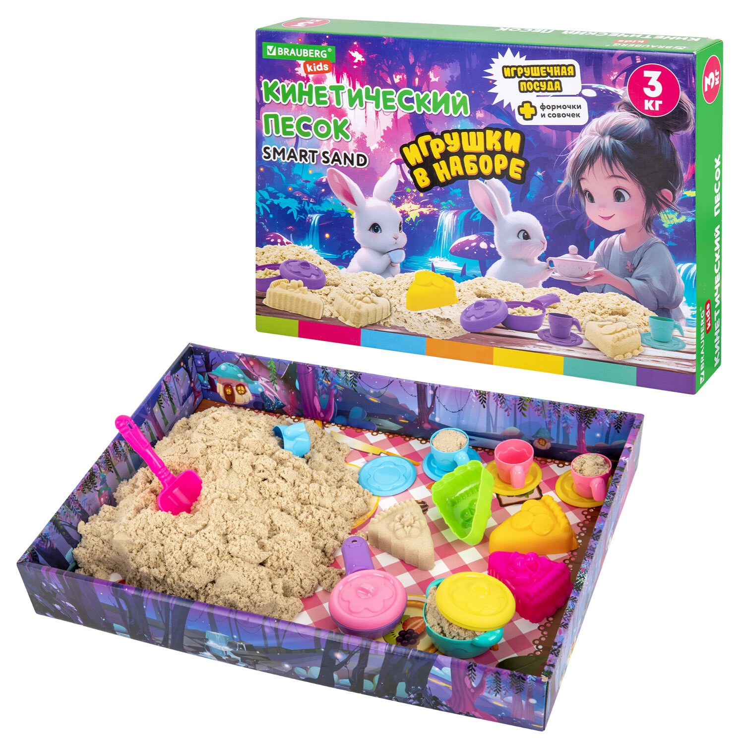 Набор кинетического песка 3 кг "ВЕСЕЛОЕ ЧАЕПИТИЕ" песочница, игрушки, формочки,BRAUBE, 666213