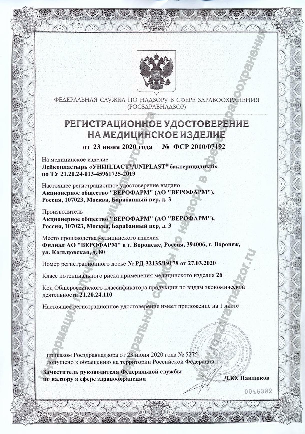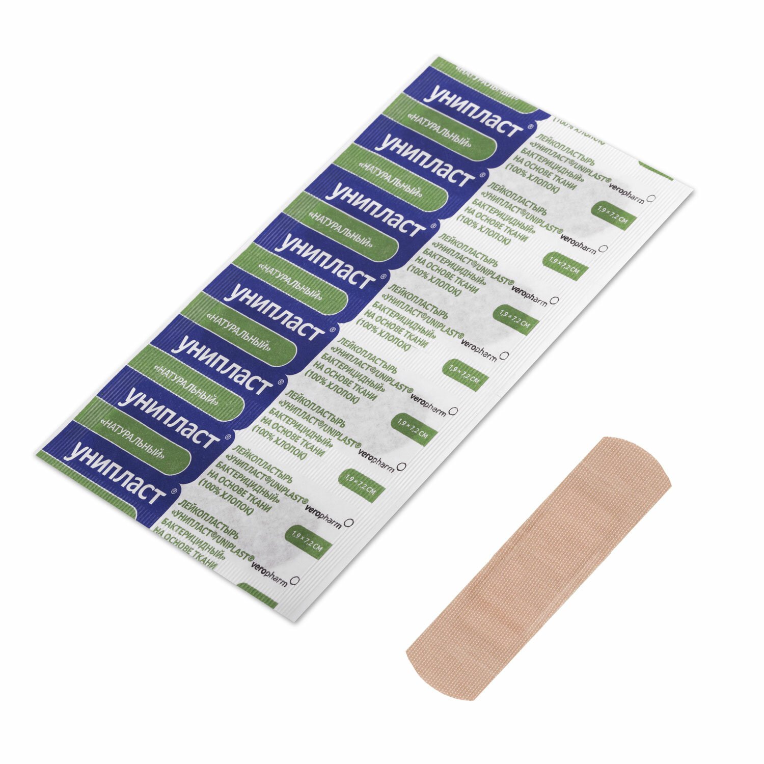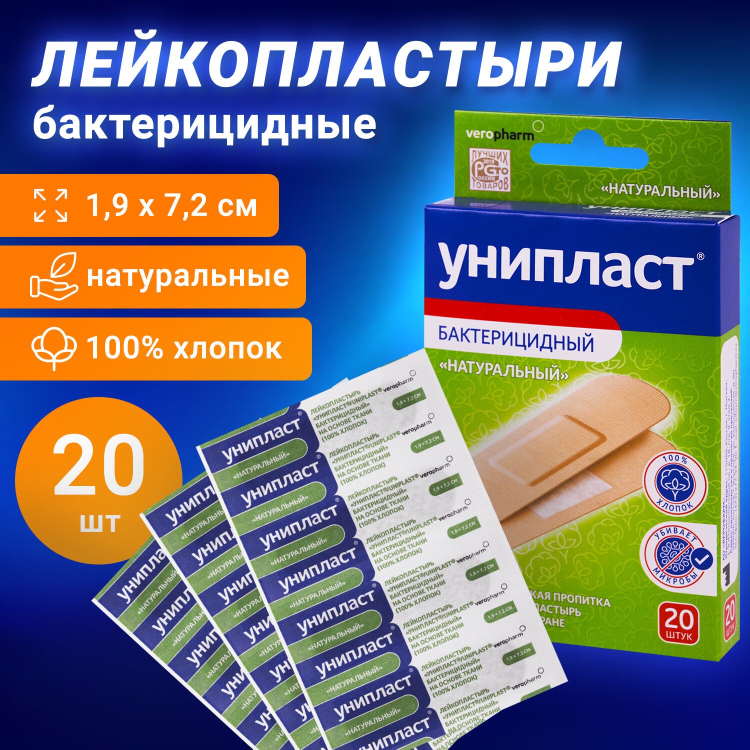 Набор лейкопластырей бактерицидных 20 шт., УНИПЛАСТ, 1,9х7,2 см, натуральные, 20024374