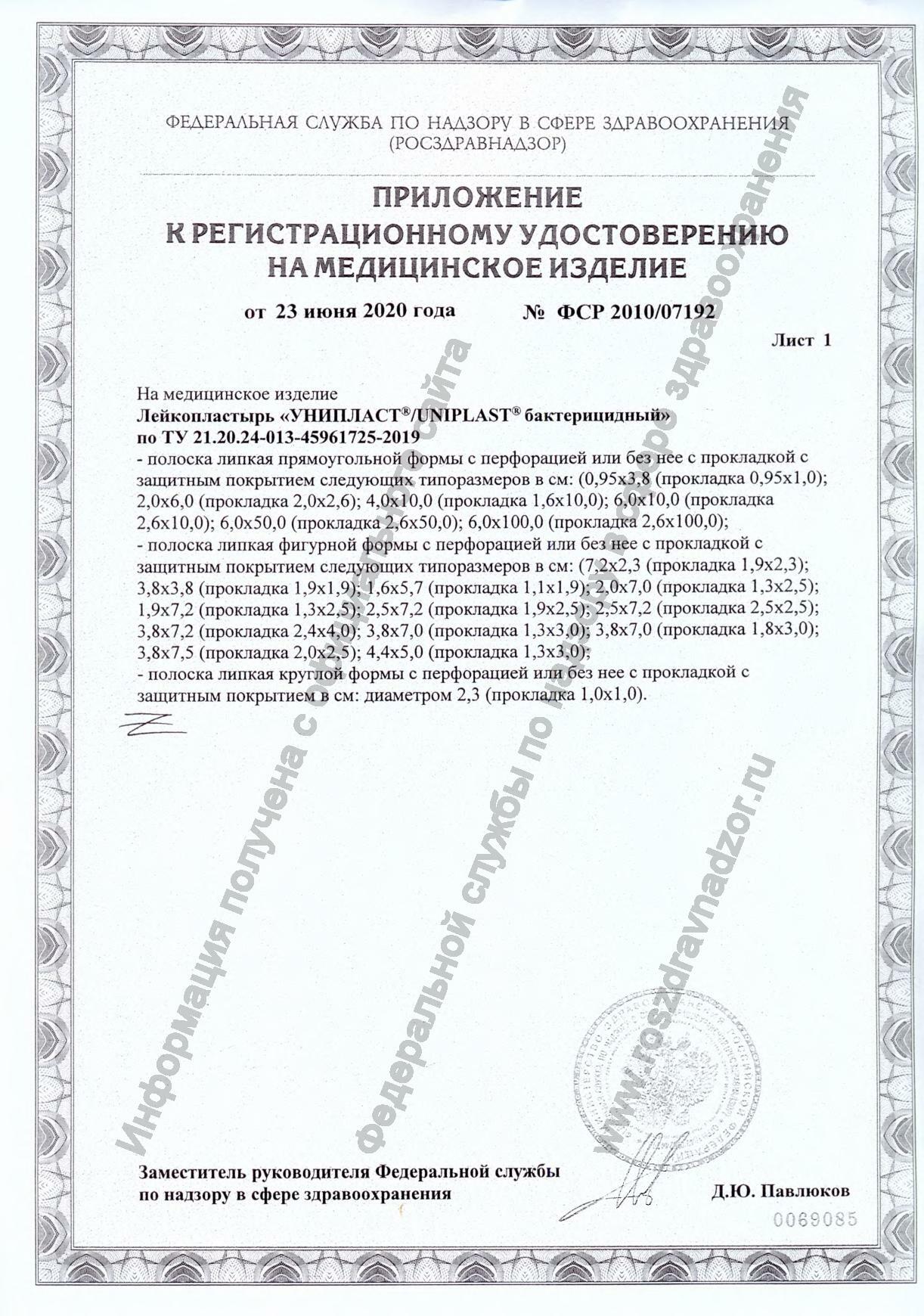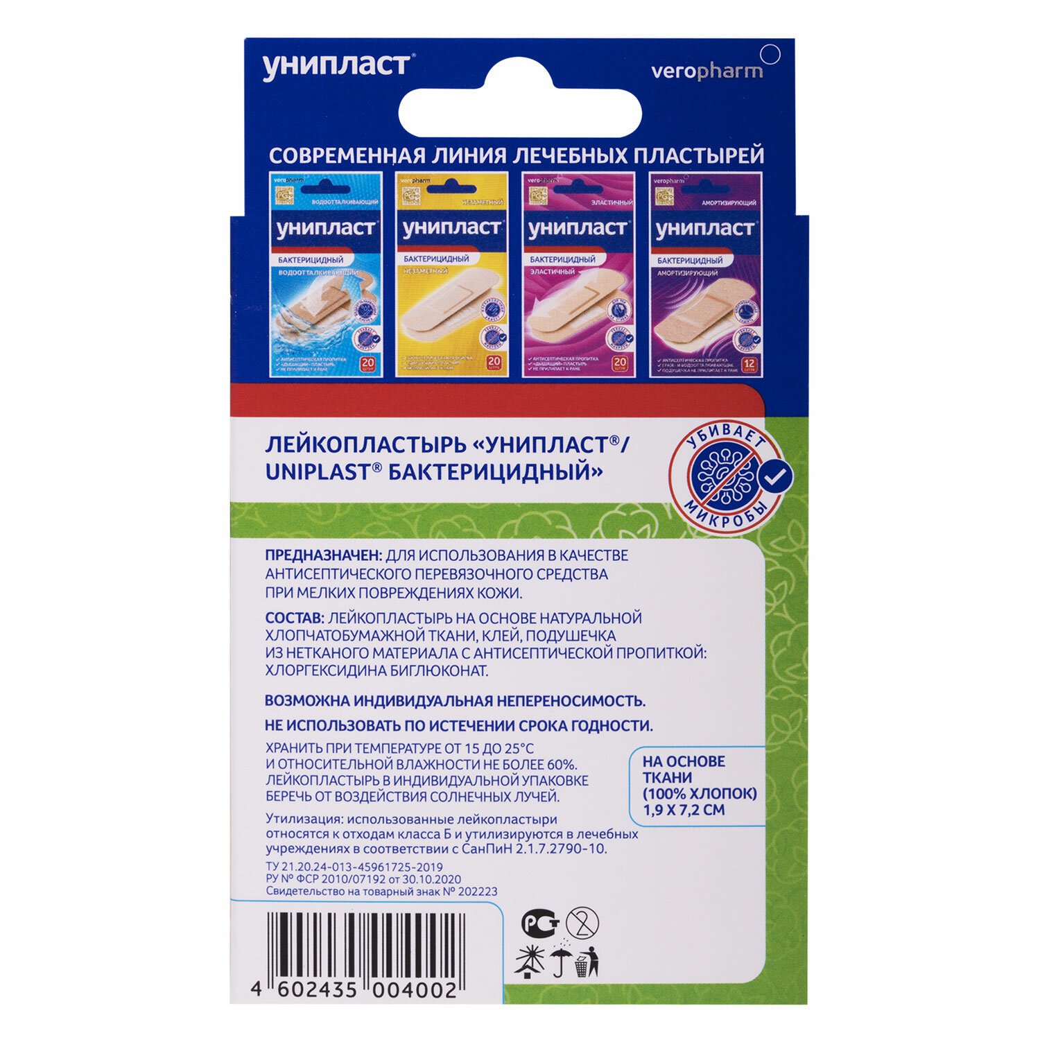 Набор лейкопластырей бактерицидных 20 шт. УНИПЛАСТ, 1,9х7,2 см, эластичные, 20024388