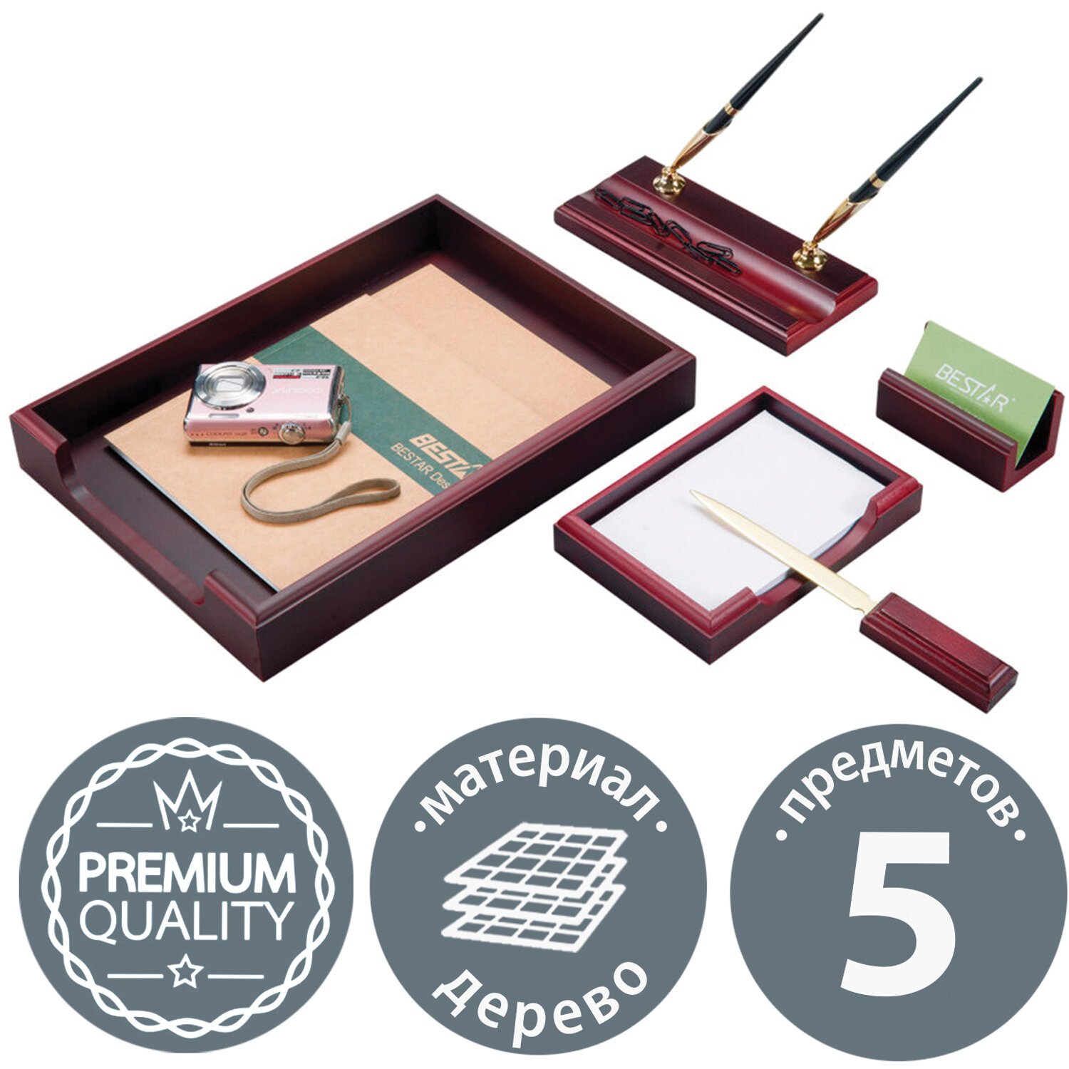 Набор настольный BESTAR "Neptun" из дерева, 5 предметов, цвет "красное дерево", 236370