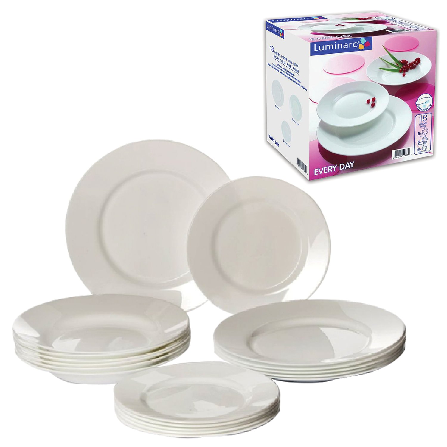 Набор посуды столовый, 18 предметов, белое стекло, Everyday, LUMINARC, Q9318